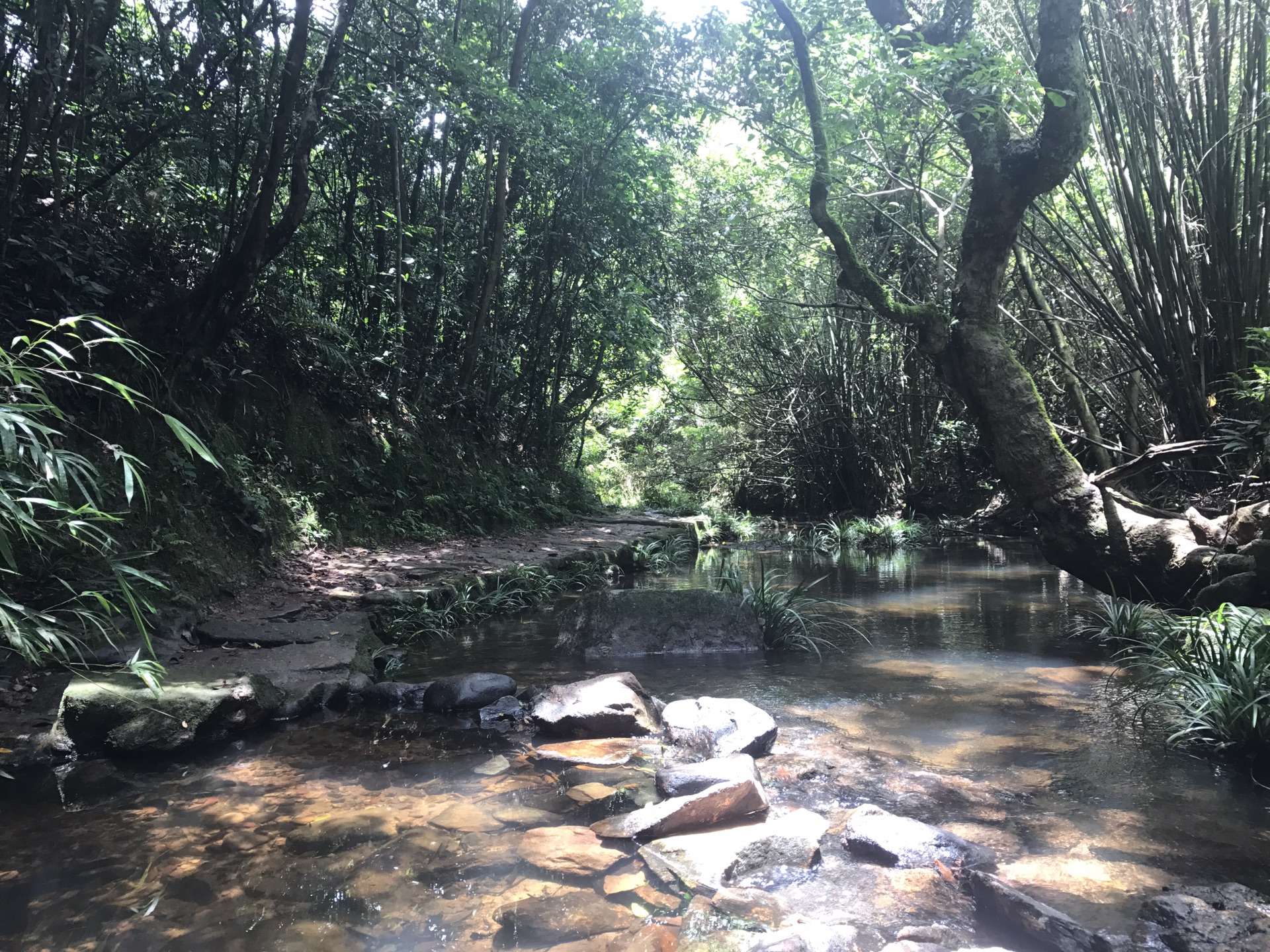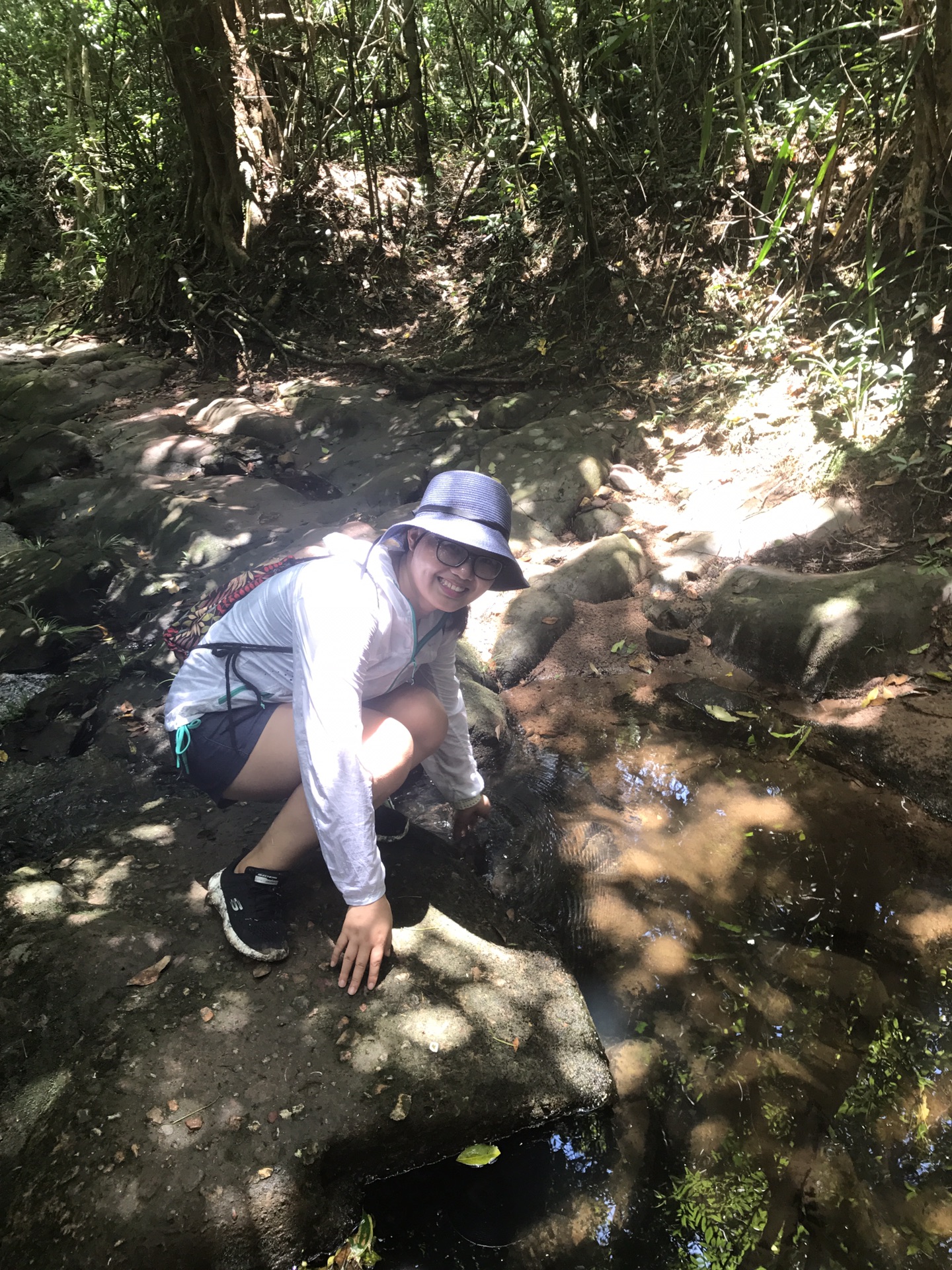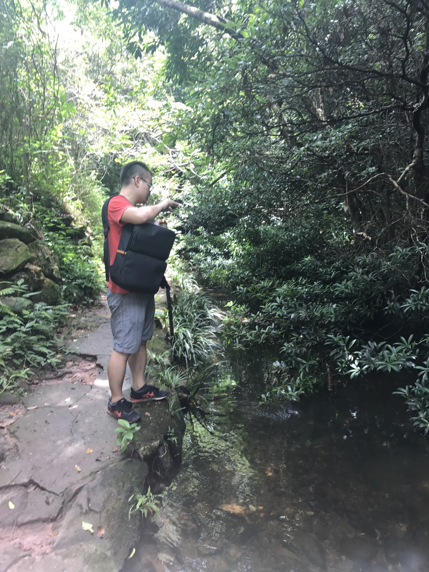 一路上碰到的小溪流都有很多鱼,锰哥由最开始的浏阳烤鱼话题,转生犹怜之心,说这些鱼在这里好可怜,他拿出自己的干粮喂起鱼来,我和美女程序媛催都催不动,哈哈哈哈。