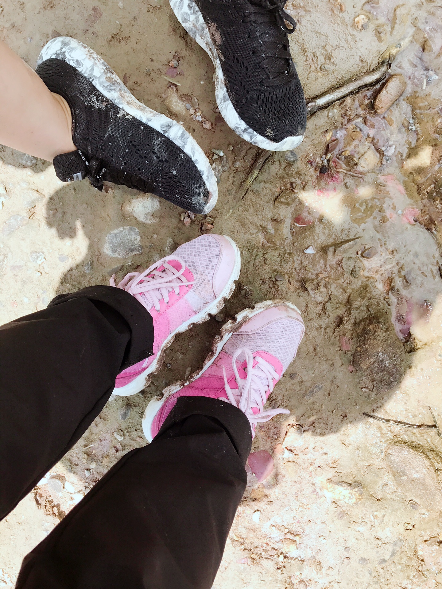 随着路上碰到泥巴路的机会越来愈多,且整条路线毫无一个人,so,大家对我的路线深表怀疑;加上山里毫无信号,谷歌地图完全打不开,我靠着感觉一路暴走,大家都没有最开始的轻松,而是一鼓作气地往前走,希望能看到标示牌,看我鞋上的泥巴就知道啦~