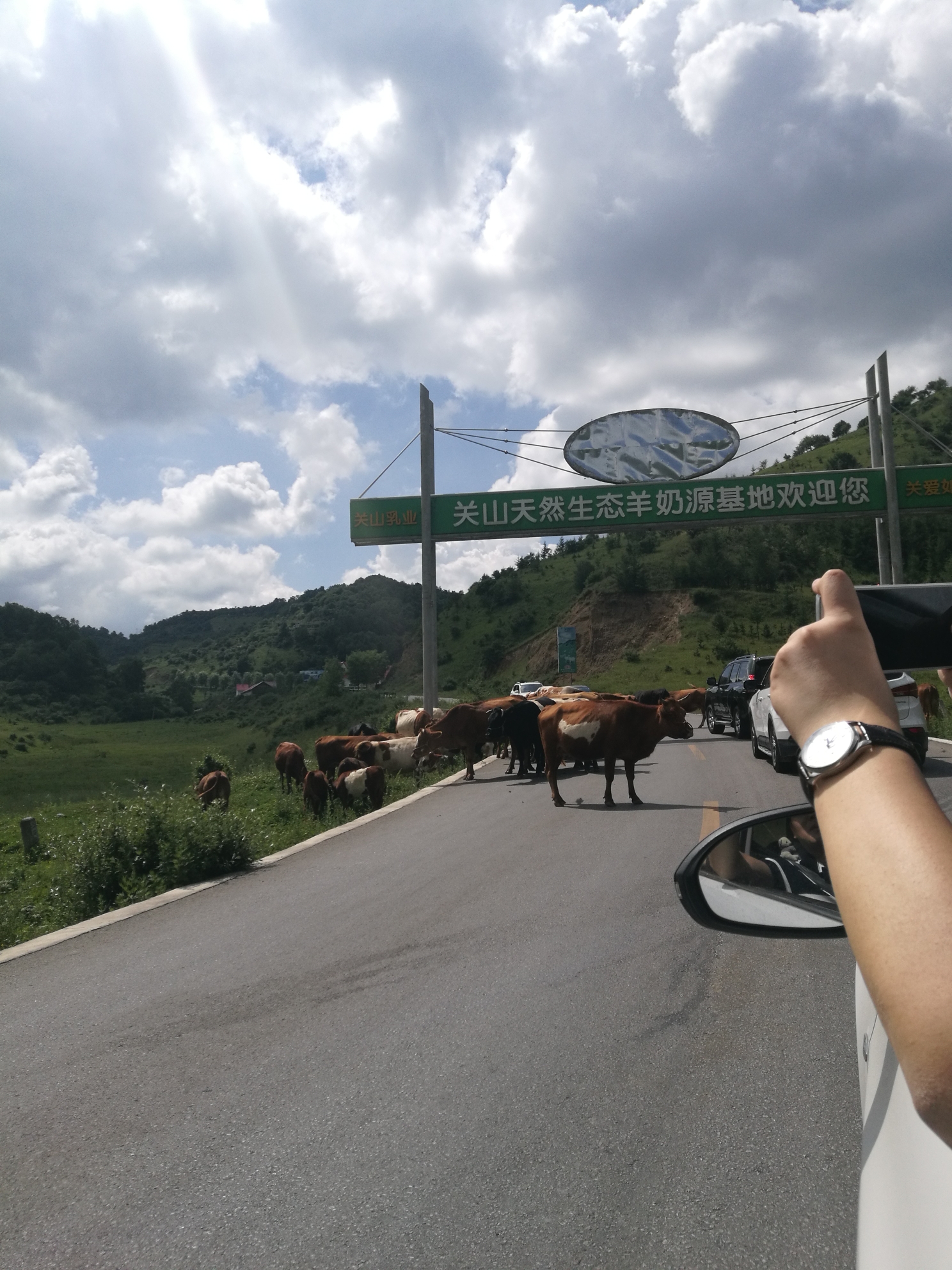 一路高速,有私人司机就是好,坐车的一路睡觉,喝酒,聊天。陇县下高速,开始蜿蜒的山路,最近票价减半,私家车可以驶入景区,确实方便。随着海拔得上升,温度降低,我们关闭空调,打开车窗,大口大口呼吸着氧吧的空气,爽就一个字。随着接近牧区,高山草甸的美景接二连三的冲击着久居城市的我们,牛儿懒洋洋的站立在路中间,有的直接爬在马路上,来往的车辆与之近距离插肩而过,雷小姐兴奋的嚷着要司机张师傅停车拍照