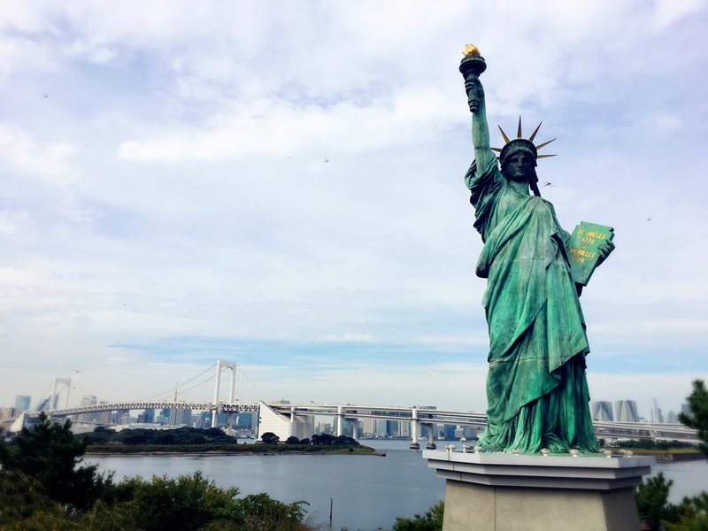 台场有自由女神像。全世界只有三座自由女神,一个在美国纽约,一个在法国巴黎,一个在日本东京
