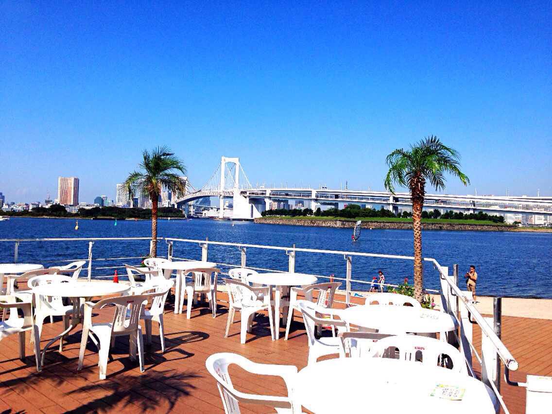 的这里。自由女神面对的是日本富士电台,背后是倚在台场海滨公园,这里是东京市内唯一的海滩公园,是东京湾,可以看到对面的彩虹大桥、天空树和东京塔。台场也有很多购物的商场,还有一个大摩天轮很漂亮。