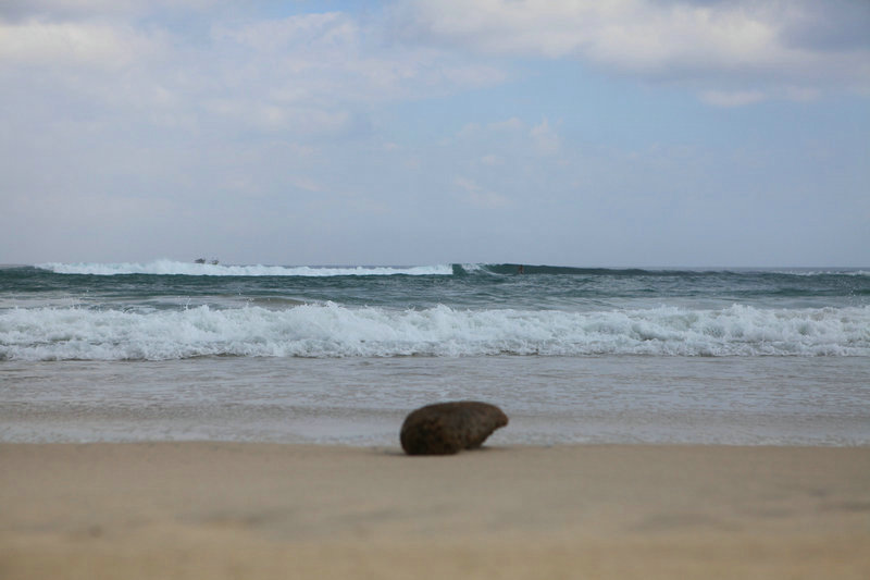 走着泥沙路来到海滩边。第一眼感觉沙滩很小,第二眼沙滩人少,第三眼就是它