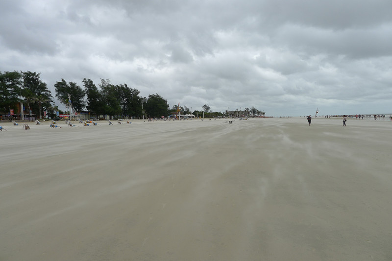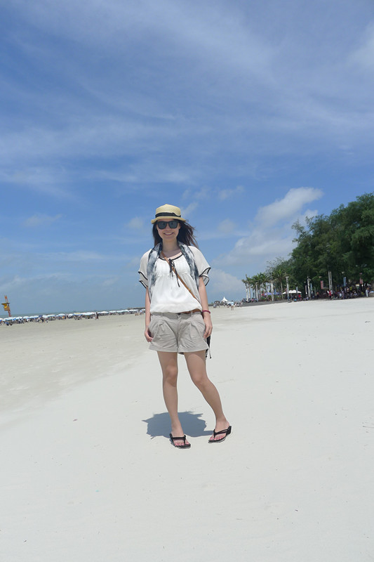 第二天心情愉悦地坐3路去了北海 银滩,在去过厦门 和青岛 后,不得不承认,银滩的沙真的很美,细软的白沙 ,脚踩在上面很舒服,很柔软,只不过那天洛坦还在北海 晃悠,所以银滩狂风大作,也让我们见到了难得一见的“沙浪”,很是壮观,我们俩深深地被震撼了,只不过在看美丽景色的同时我们俩也付出了惨烈的代价,被细沙吹得浑身疼痛,真没有想到小小的细沙竟然如此威力强大
