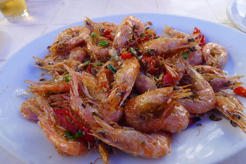吹了没一会儿,我们俩就决定撤退,不然还没上岛就先被风给吹伤了,哈哈哈哈。正好快中午了,赶紧找吃的去,原来是想去网上推荐的半坡小炒,哪里知道北海 的三轮车夫欺生,知道我们不认路,把我们带到了宰人的半坡海鲜大排档(难怪车费才2元,事实证明低于5元的车费都有猫腻
