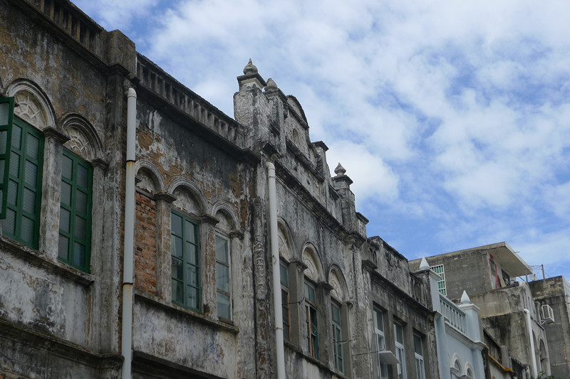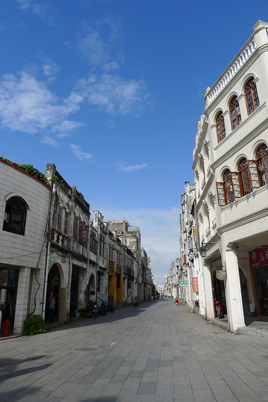 老街 原名升平街,中西风格的建筑相互毗邻,历史感浓重,从那些残旧的建筑中可以明显看出外来移民的居住痕迹,有那么一瞬间,脑海中闪现了鼓浪屿 上的小路,有种似曾相似的感觉,不过相较之下,这里更市井商业气息也更浓烈,老街 两旁基本上都是贩卖各种纪念品的商铺。除了建筑风格外,当地居民翻新的新式建筑参杂在残破的旧式建筑中不时出现,放佛证明着历史的交替。
