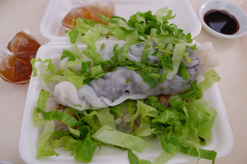 当地有名的卷粉,一个是越南 粉,一个是虾肉粉,其实就和茶餐厅里的肠粉差不多,味道还不错,2.5元一个