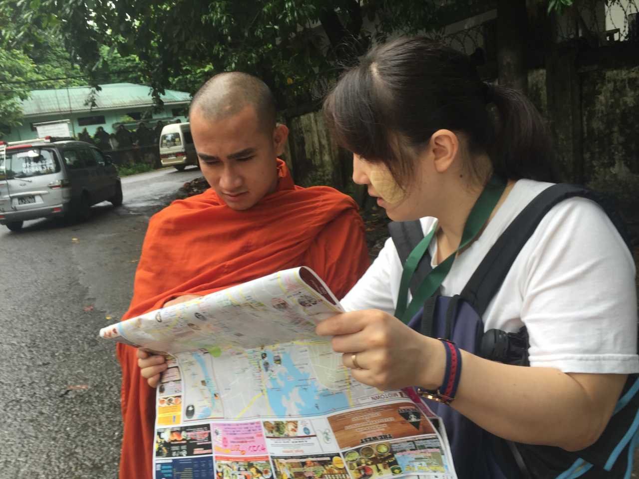 同时附近有不少taxi司机围上来询问是否需要打车,可以讲价,因为时逢大雨,交通堵塞,所以价格会比晴天高1000K,最终司机小哥收取9000K送我们到40分钟车程外的酒店。小哥英语一般,缅甸人普遍口音较重,多听几遍还是可以听懂,我从第一天带语法的英语慢慢进化到两三个单词拼凑的混乱英语,反而更便于交流。