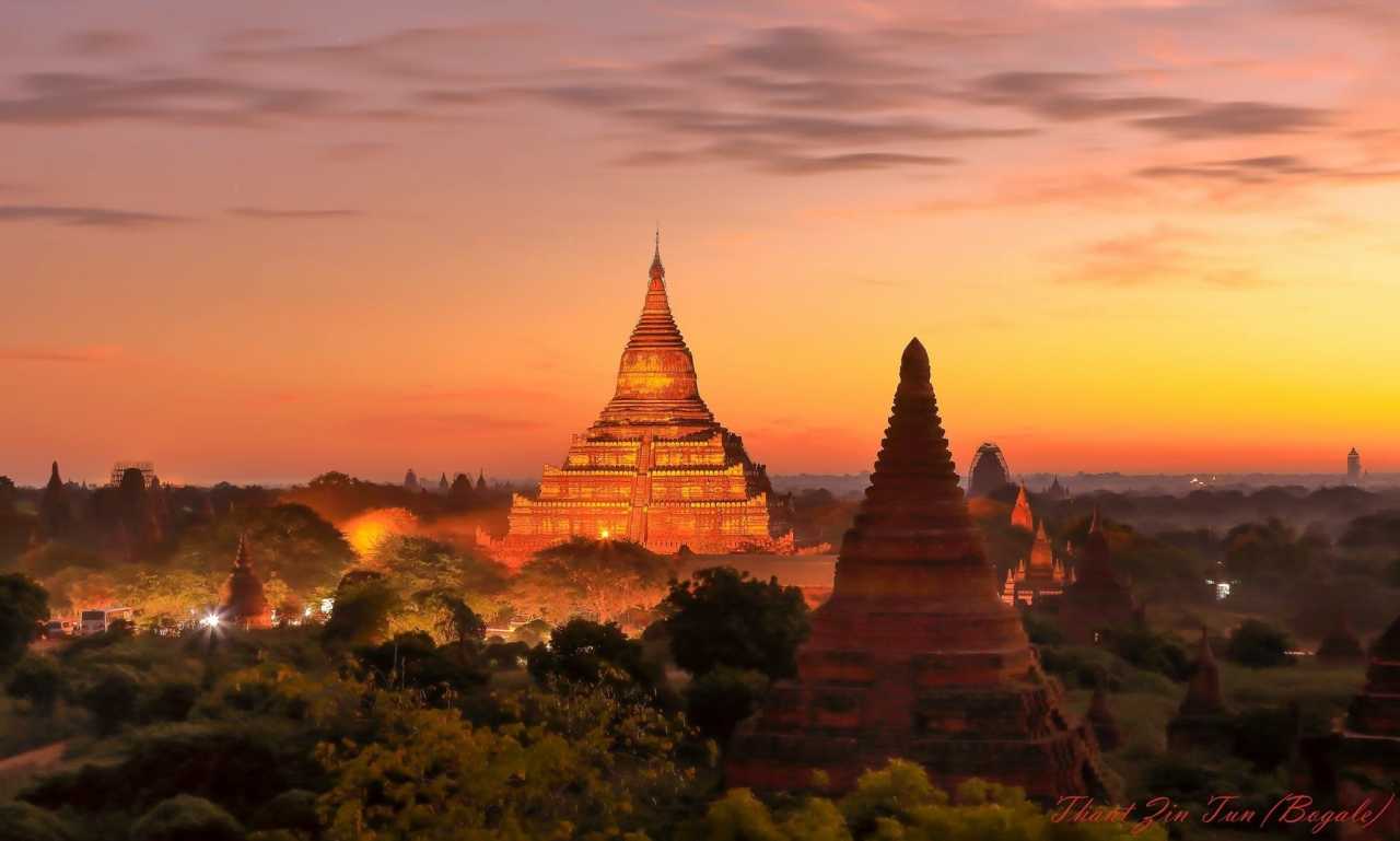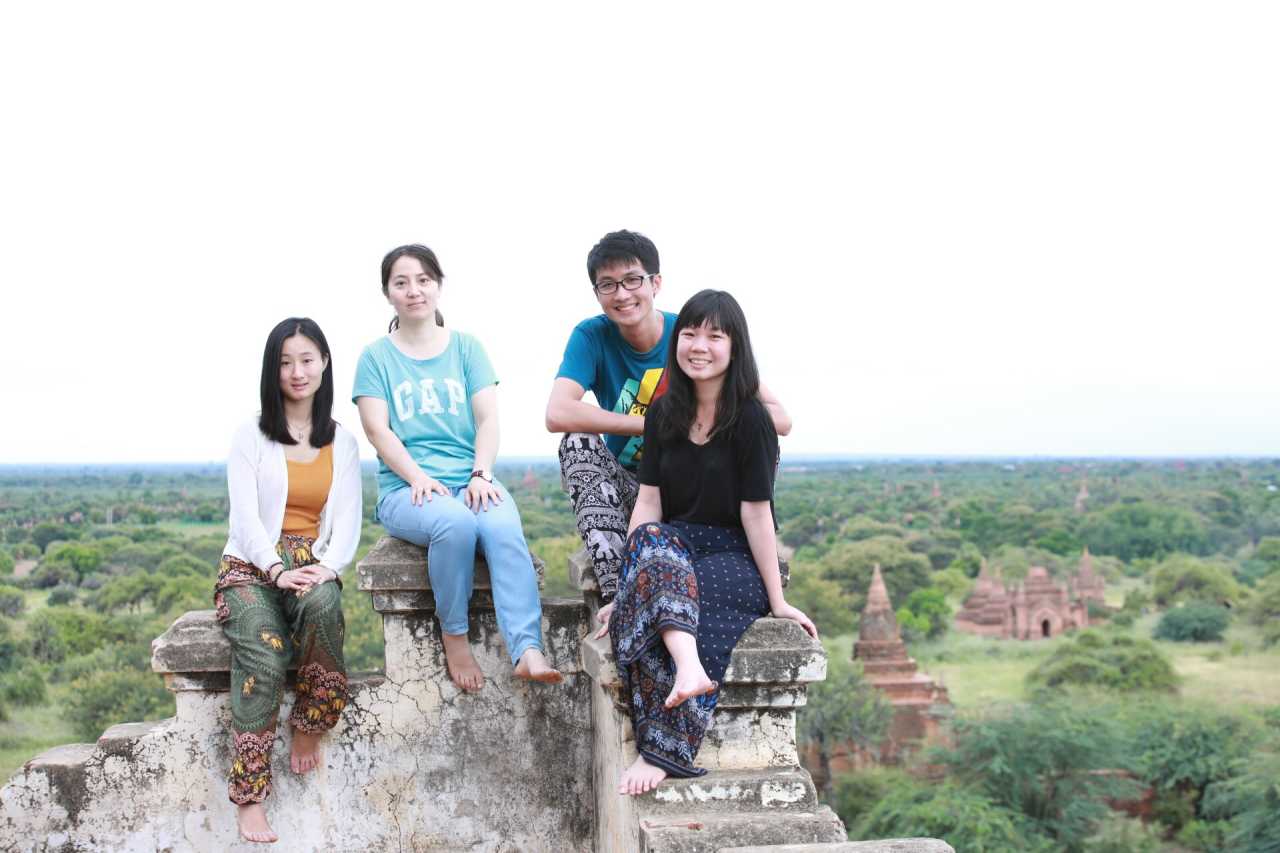 傍晚时分,到达许三多塔,偶遇那对德国泰国夫妇,惊喜之感像找到了故人,合影后互道一声希望再见,便真的再见了。等候日落的时候,偶然和边上一个摄影师聊了起来,他是缅甸人却常年在新加坡工作,斗胆请摄影师帮我们拍了一些照片,他的热情和专业让我心生敬佩,同时也很幸运得到了摄影师之前在蒲甘拍摄的诸多大片,奇妙的邂逅大大弥补了厚厚云层遮挡住落日的遗憾。