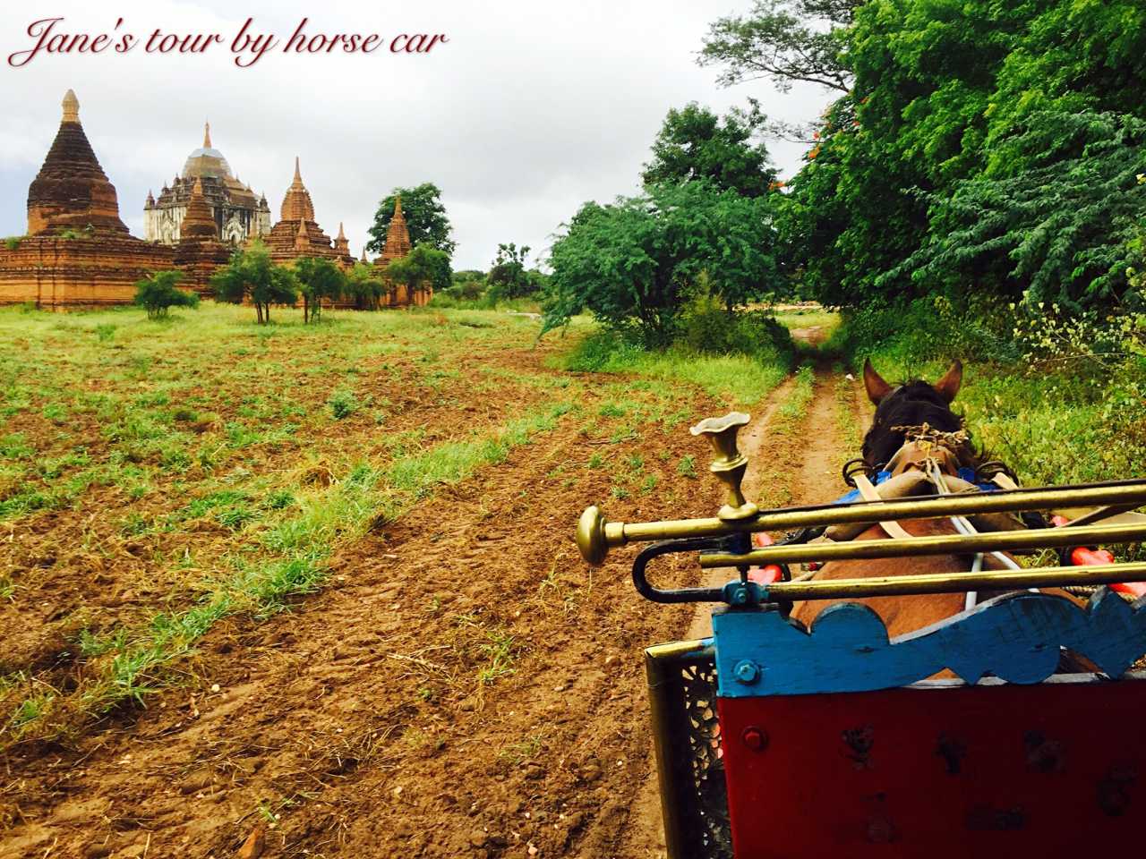 旧蒲甘地区即是千座佛塔云集之处,因受保护,当地居民都已外迁去了新蒲甘,所以内部只有5家酒店,能预订到坦德酒店,甚感幸运。达到时候才早晨七点半,无法check-in。寄存好行李,走到门口处,发现有租赁马车、电瓶车、自行车,比酒店提供要便宜不少。和同伴商量,第一天租用马车,第二天租电瓶车。我们的马车夫非常nice,行车途中路遇颠簸或树枝遮挡视线,他定会诚恳地说sorry,时不时询问坐在后方的我are u ok? 对缅甸人民的印象顿时大好。