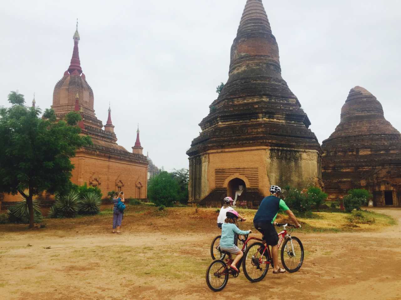 晨起,已是六点,与马车夫约好带我们出发看日出(包车一天30000K,日出单收1000K)。阴云密布,车夫选择了较近的一个小塔,爬到较高处遥望许三多,人影憧憧,此时雨势渐大,蒲甘四千八百寺,多少楼台烟雨中,真想能穿越回蒲甘王朝鼎盛时代一睹佛塔初时真容。