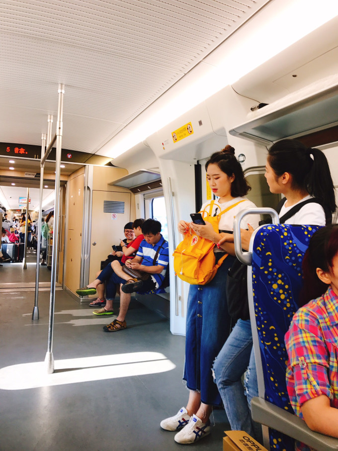 我拍这张照片当然不是为了拍美女嘛~第一次见到像公交车一样的侧栏座位,还是需要拍照留个纪念嘛,现在想起来城际还真有点像公交车……
