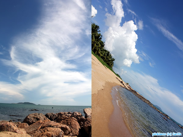 就随便这么咔嚓一张,像极了婚纱照的场景,终于明白为什么这么多人喜欢到海南 拍婚纱了,这天空…就是开发商时常对广告公司说的“要大气!大气!”