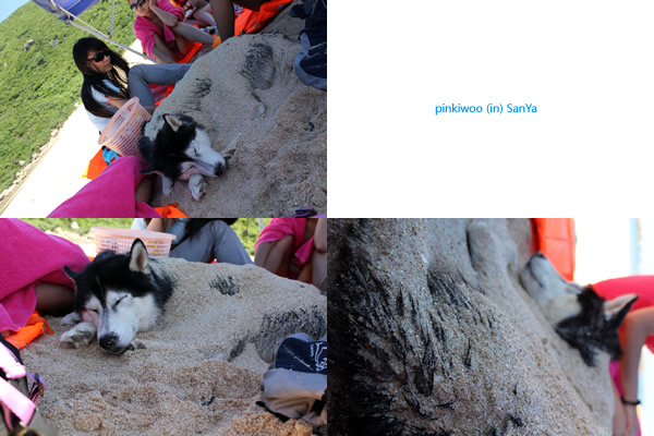 小叶同学悲催地不能下海,所以只能在岸边和辛巴玩…玩掩埋…