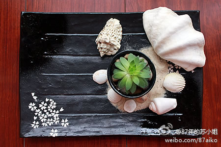 从桃花岛捡回来的沙和贝壳,回成都 以后做了一个小景观。
