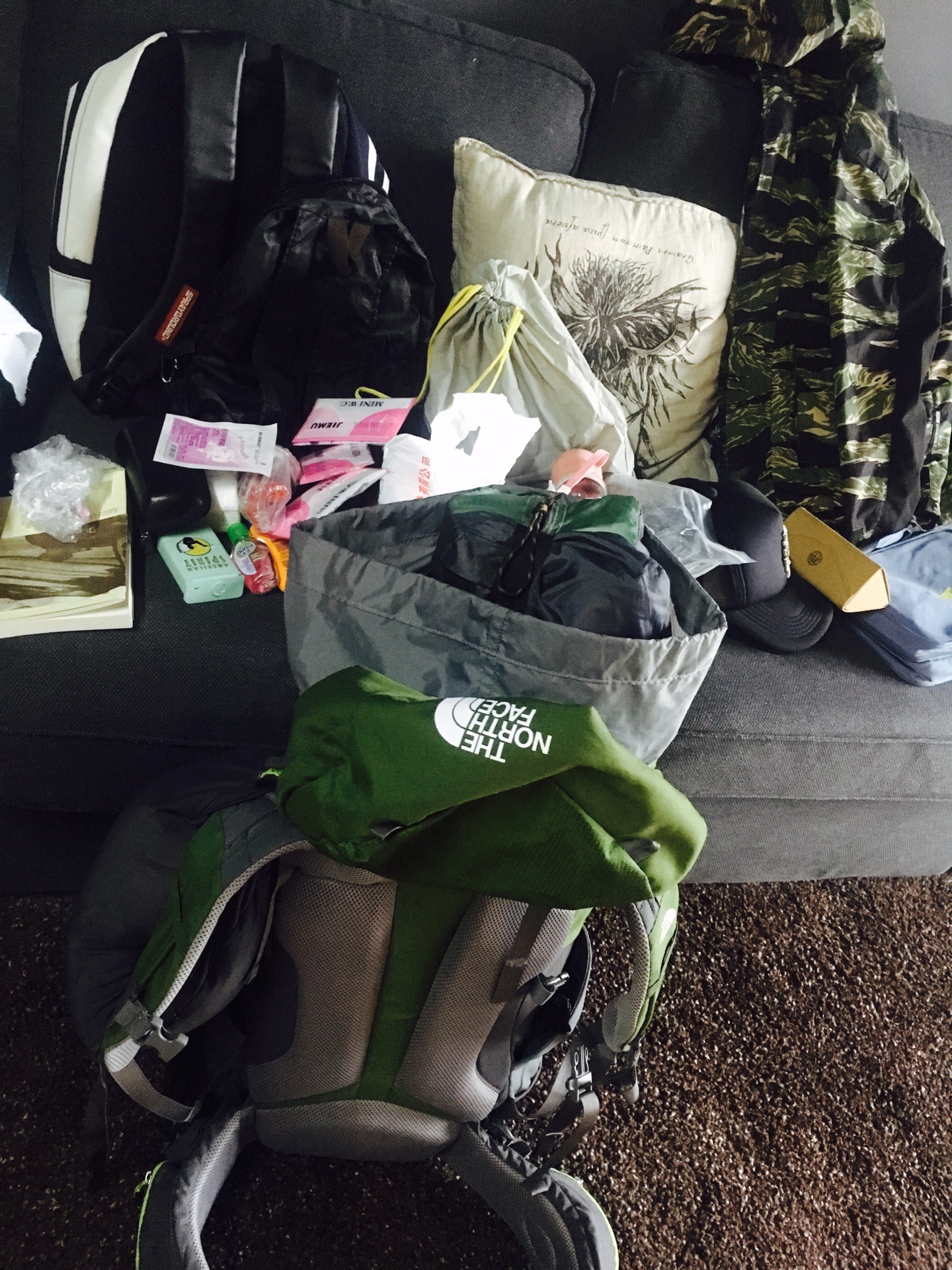 登山包、帐篷、防潮垫、睡袋、手电、登山鞋(一定要旧鞋并且穿得非常舒服的)、登山杖(两根最好咯,别不听,你会知道这有多重要)、冲锋衣(山上早晚温度低,必须要外套)、护膝、手套、冰袖、太阳帽、太阳镜、魔术头巾、防晒霜(山上的紫外线真的很强,实在包不住的皮肤就涂上防晒霜,一定要)、水壶、雨衣、拖鞋、洗漱用品、大功率充电宝(记住大功率,扎帐篷的话没有地方充电)、驱蚊水、药品可适当带一些(藿香正气、感冒药、扭伤药物等)、小音响(你喜欢就带吧,看星星听音乐很棒)