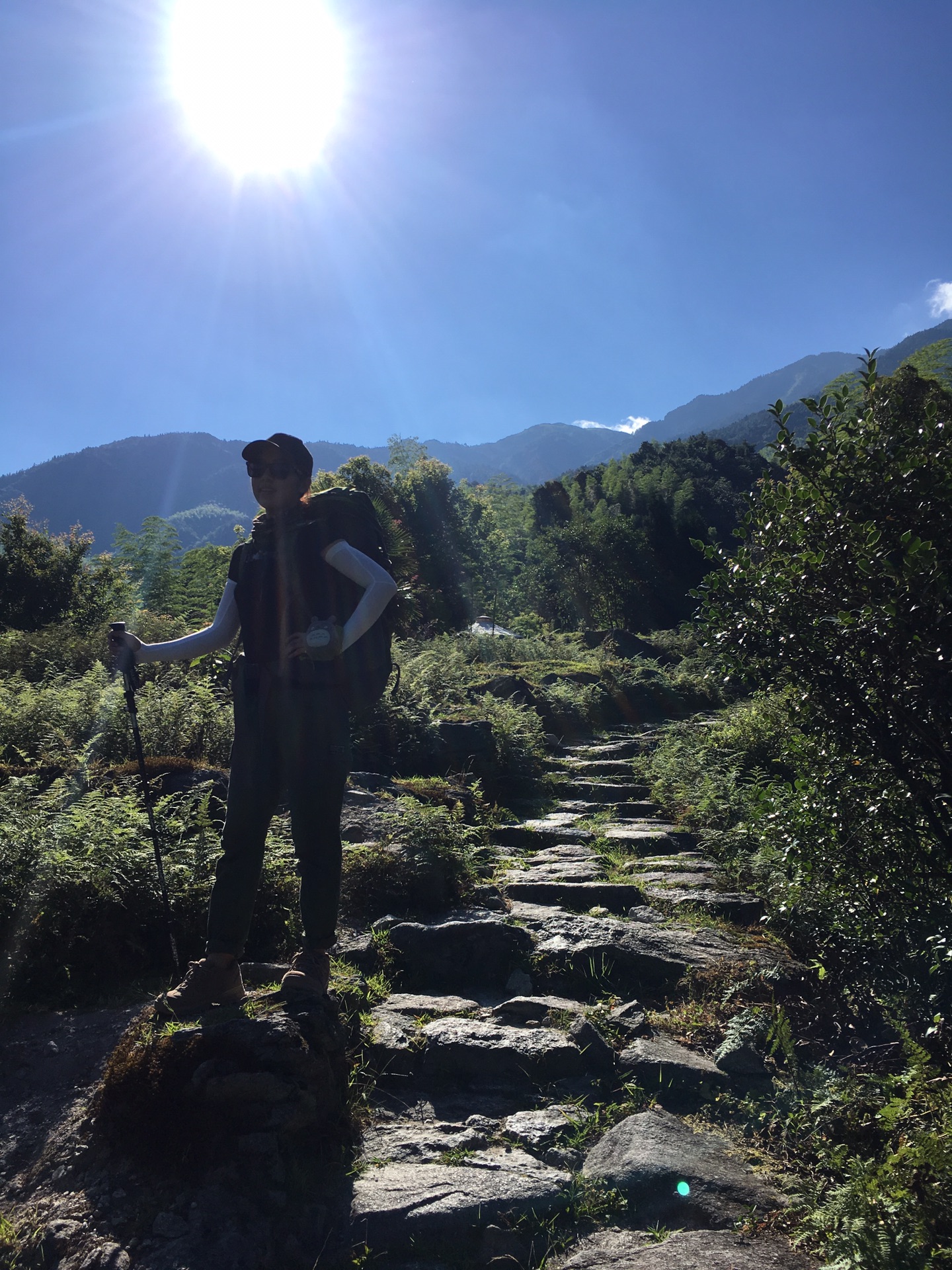 在小溪边小憩是应该的,小溪之前的这一小段大概一小时路程都是有石块铺成的小阶梯路,这跨过去就是实实在在踩出来的泥巴路
