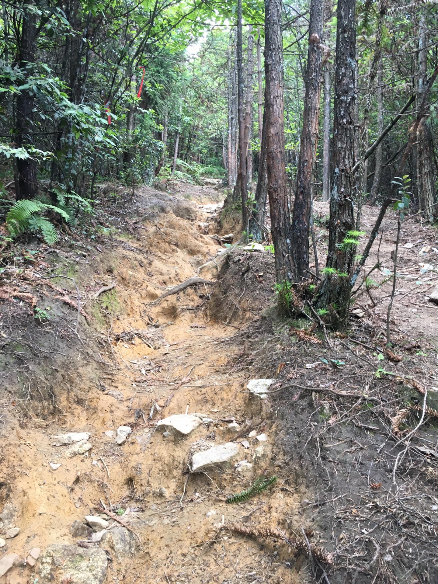 这段路呢基本就是向上的爬坡,平路几乎没有,因为在六七个小时中你将要登上赣西最高点,海拔1918的金顶,所以用“四只脚”来上山还是会轻松很多,两根登山杖用上