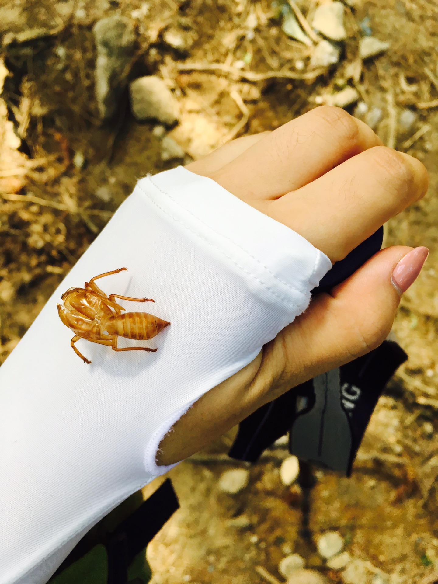 这一路上山都是树荫,并不晒,一路上知了声相伴,还有一地知了壳