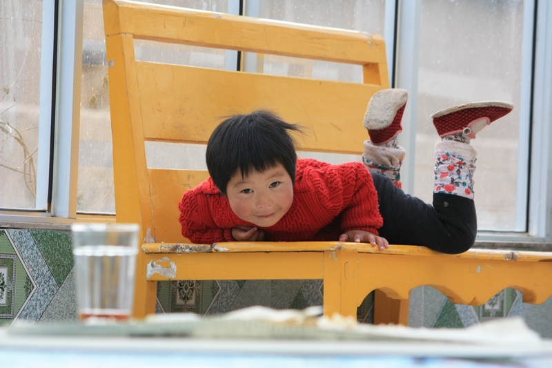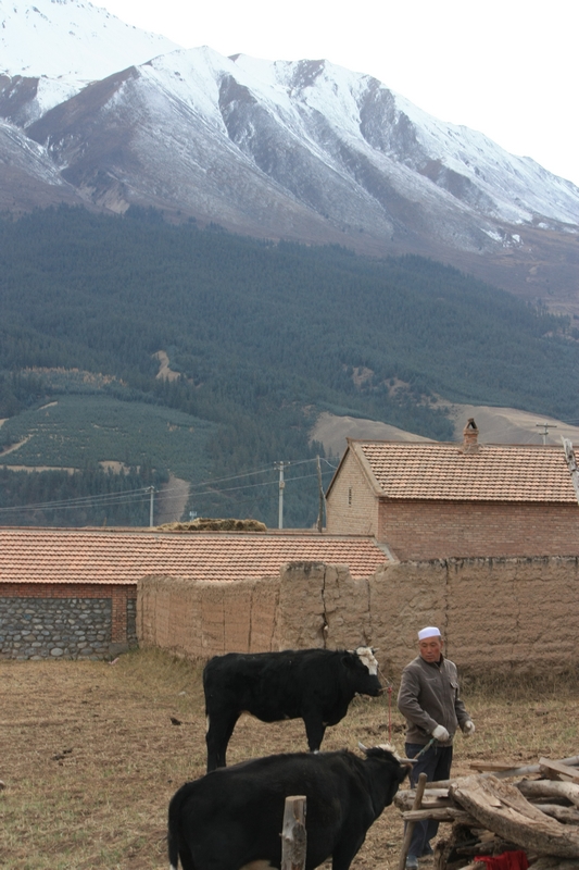 之前都是在城市,一下逛了三个省会,终于来到乡间,那里感觉很舒服,很慢,两天时间,住在卓儿山田园农庄 ,这里两个本地老人(其实不老,只是已经做爷爷奶奶了),带着两个孩子,孙女索菲亚3岁半,孙子7个月。经营着这个农庄,有几亩田,养着几头奶牛几只羊几只鸡一只狗,院子里种着各种蔬菜,阳台上养着花花草草,暖棚里黄瓜和辣椒新鲜得一塌糊涂。抬起头就看得到雪山,暖暖的炕头抱着孩子。很简单,很纯净。