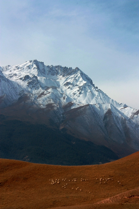 早上8点15分的汽车,气温零下,就这样一夜提早入冬了。一路上路况很好,风景绝美,路过门源 ,是看油菜花的,我们来的时候光秃秃的什么也没,不过还是可以想想的出,这跟我们那边的油菜花肯定要大气很多,过了门源 就进入祁连山 区了,祁连山 下好牧场,感觉确实很好,近处的牛羊,远处雪山,很不错