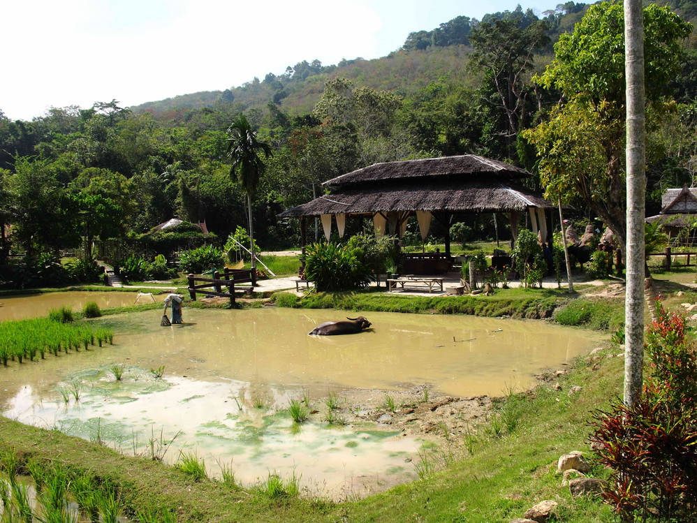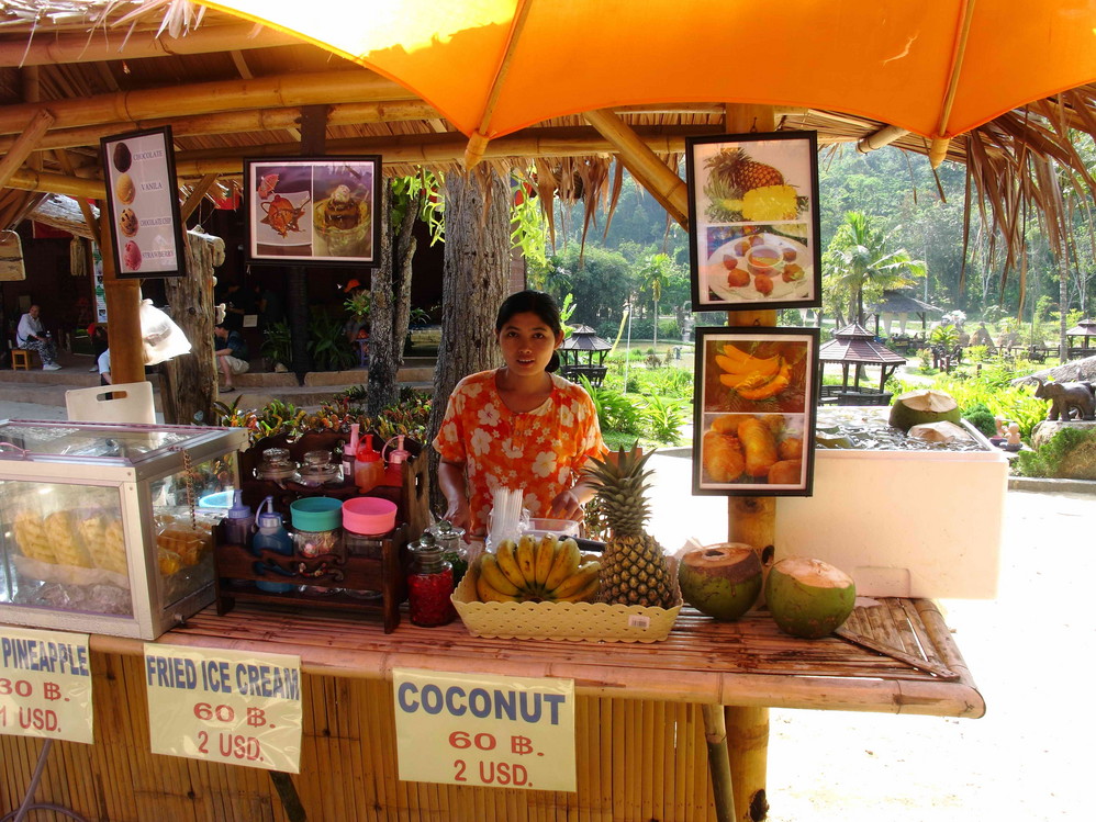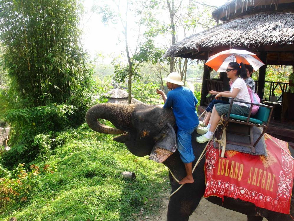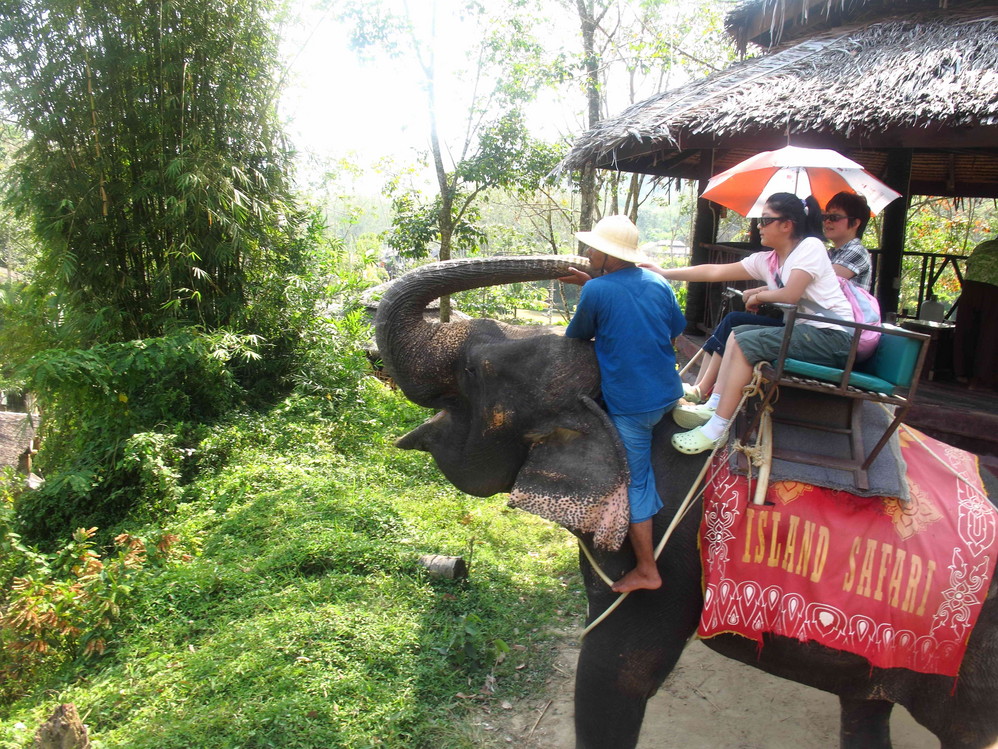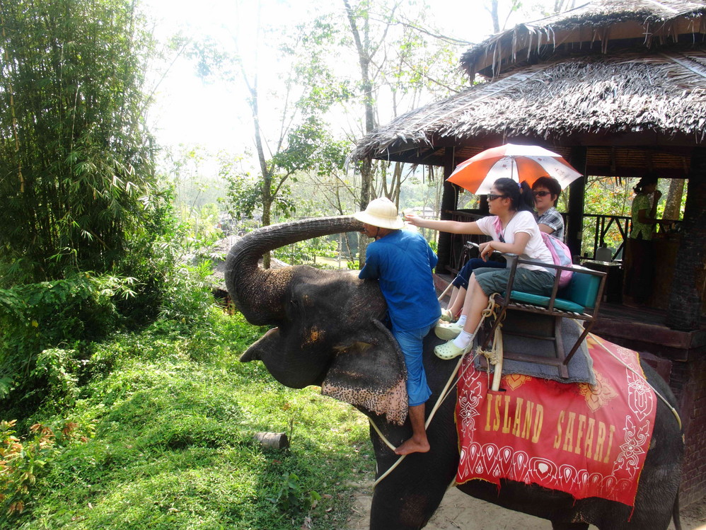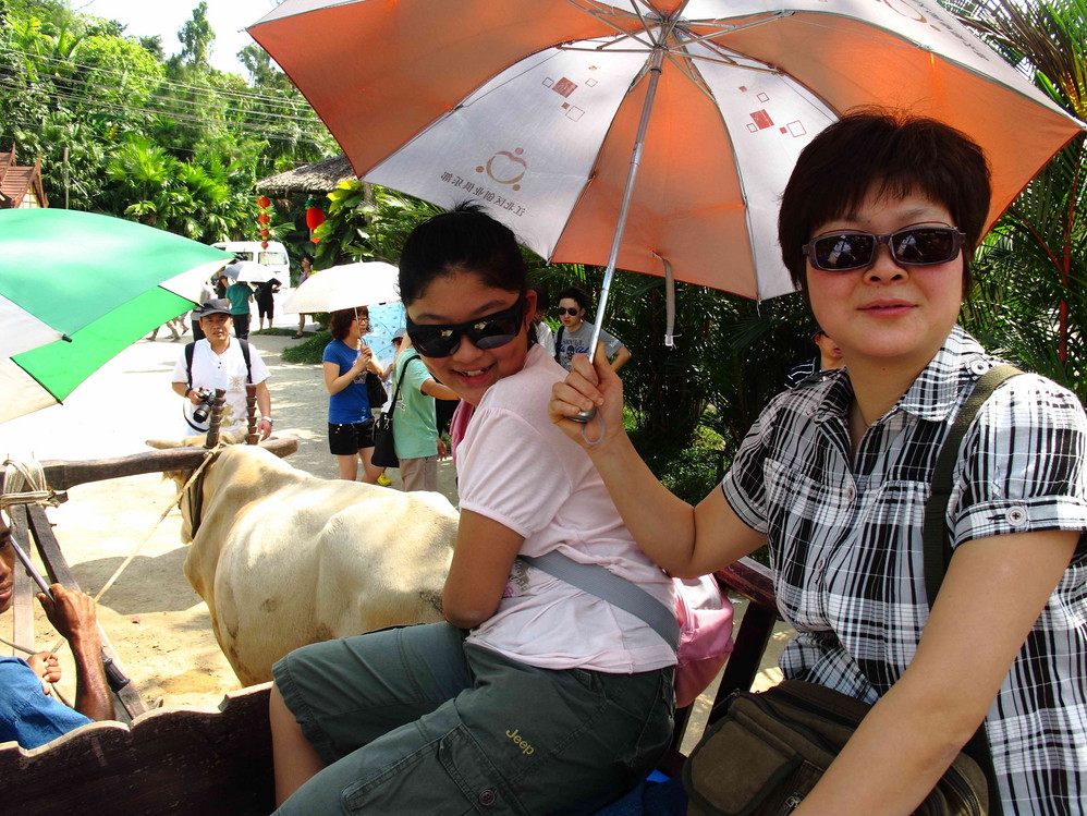 2月5日中午12.30,阿彪导游来带我们去吃午餐,据说是以泰国神话中的鸟神命名的皇家雅宴餐厅用自助餐,口味不错,点心很好吃,而且那个用餐环境一流。然后就是常规的沙发里,坐牛车,骑大象,看猴子等等,环境不错,项目一般,倒是路边的鲜花、清甜的冰椰子、卖椰子的泰国小妹给我留下了美好的印象。