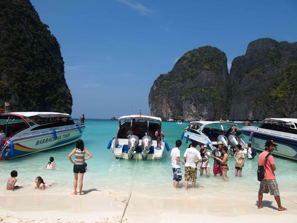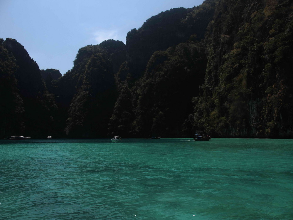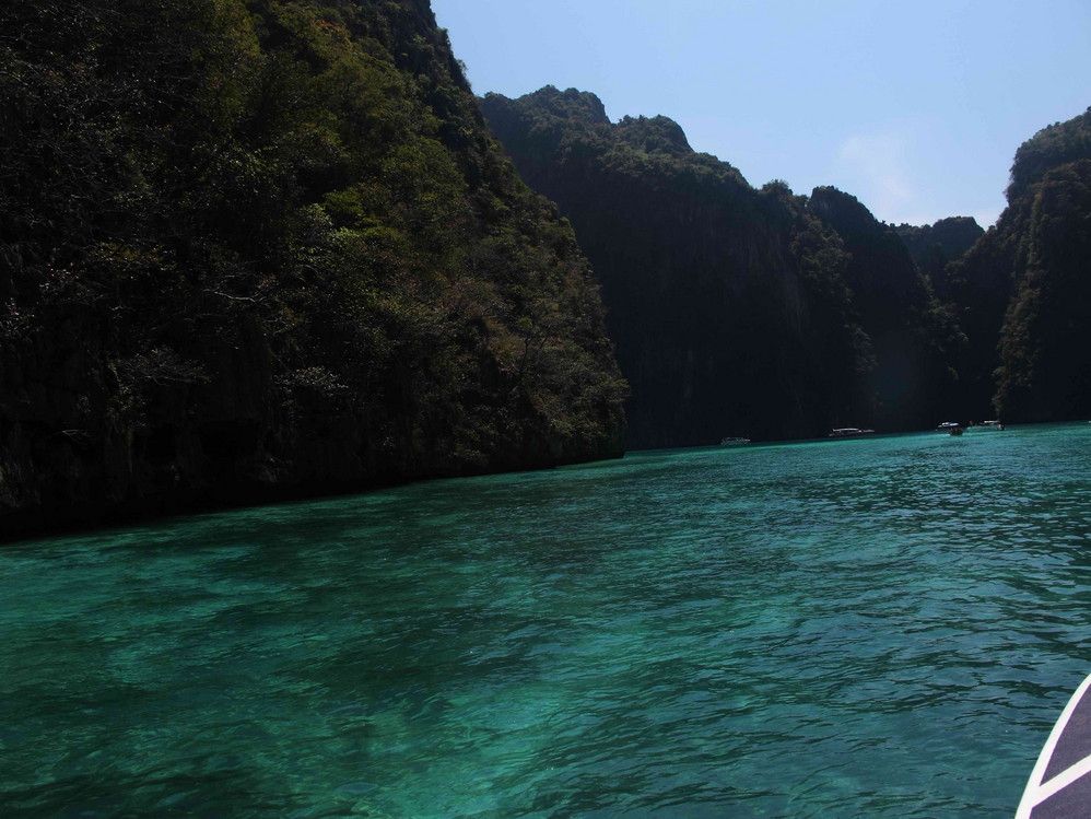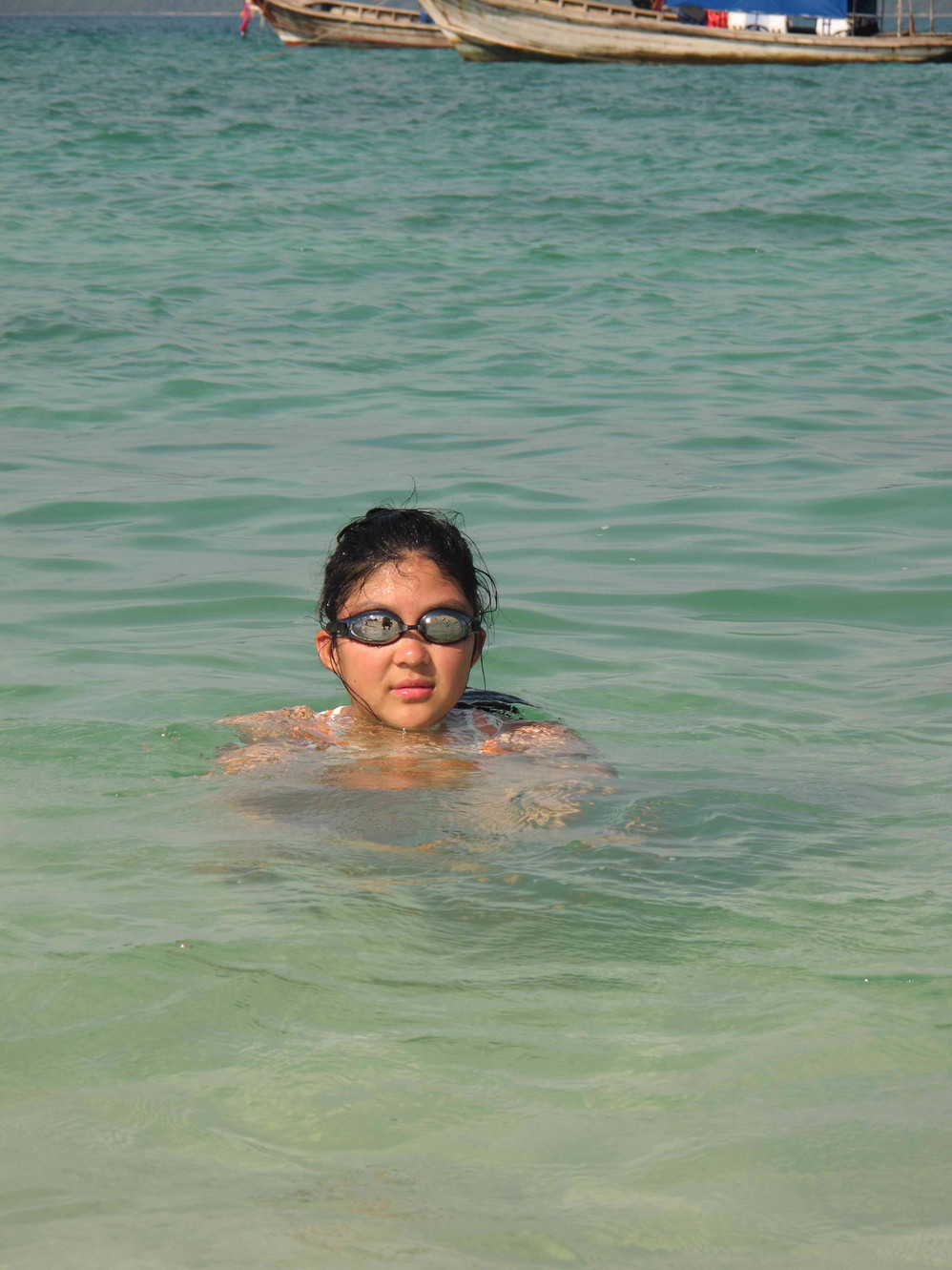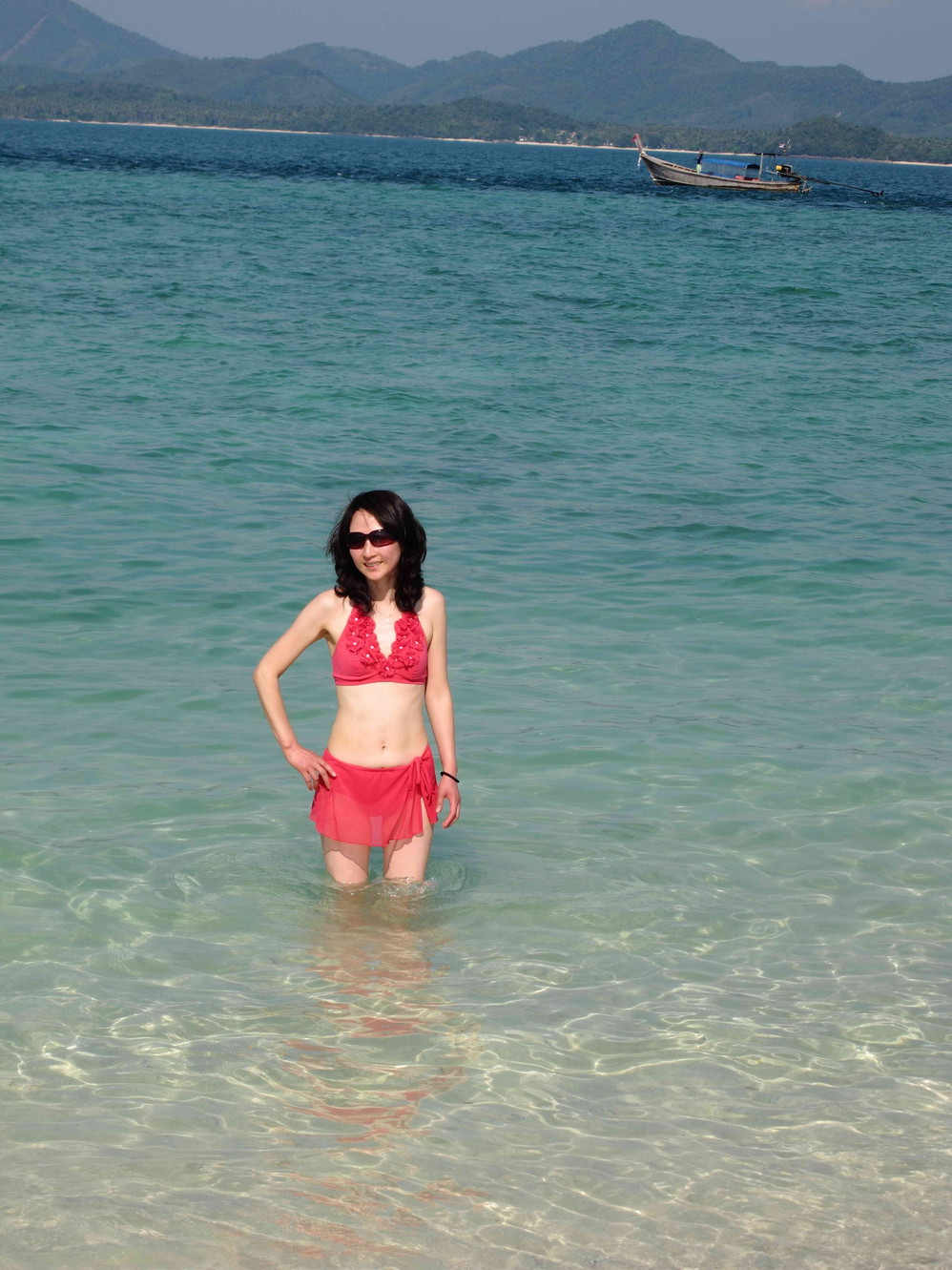 先开到莱昂纳多拍电影《情人沙滩》出名的沙滩,那个沙子白的耀眼,细的出奇。然后开到深水处停船,让我们穿上救生衣下海,在安达曼海中游泳,带上潜水镜潜水。那个海水真清,连我这个旱鸭子都下水了,漂浮在海面上,暖洋洋的,懒懒的,那种感觉无与伦比。我女儿早就带上潜水镜在周围游来游去了,害得我老婆一面要管我女儿,一面还要喊我这个旱鸭子早点上船。真希望能在那个地方多住几天呀。