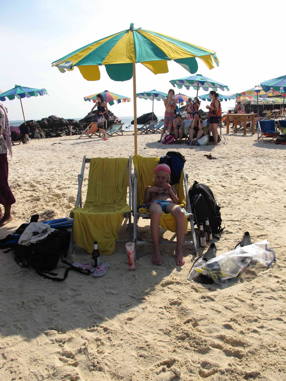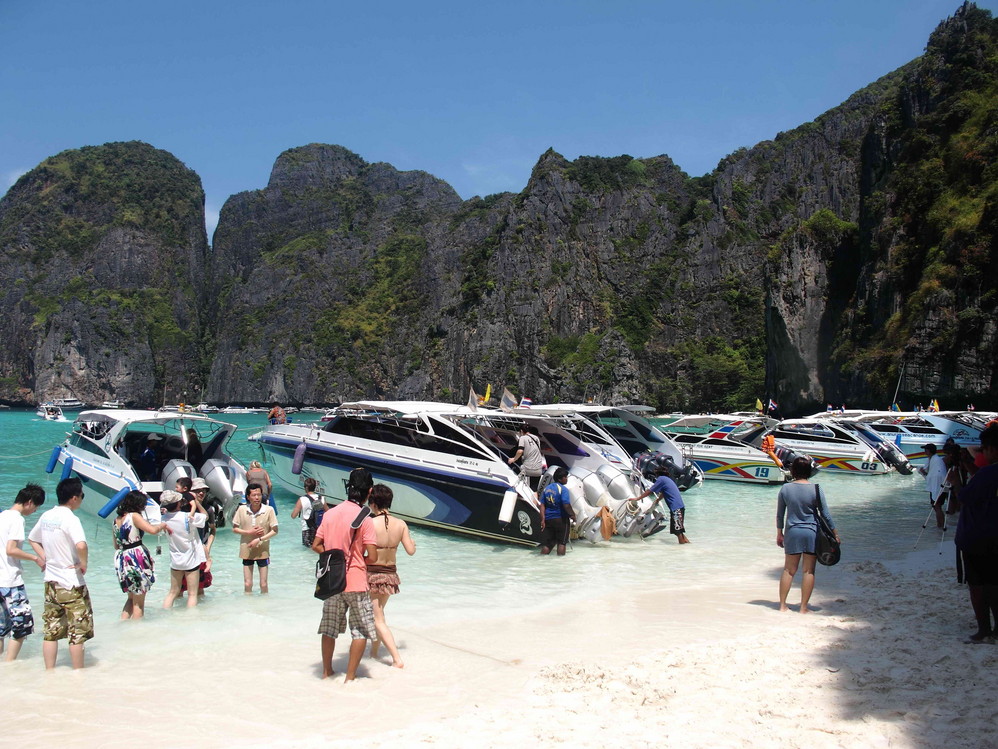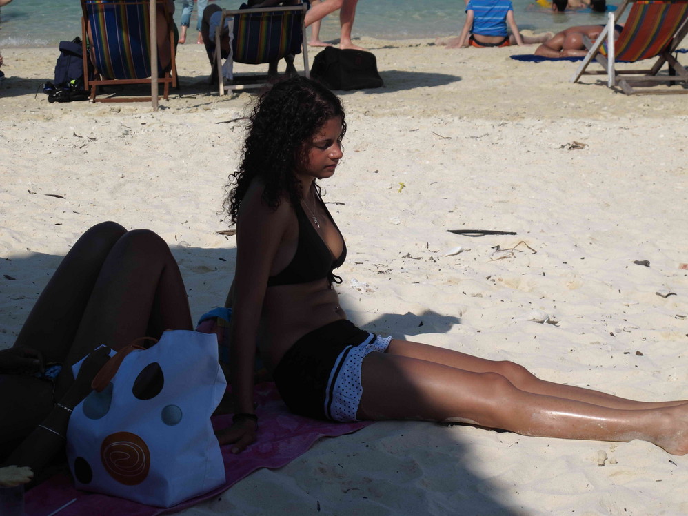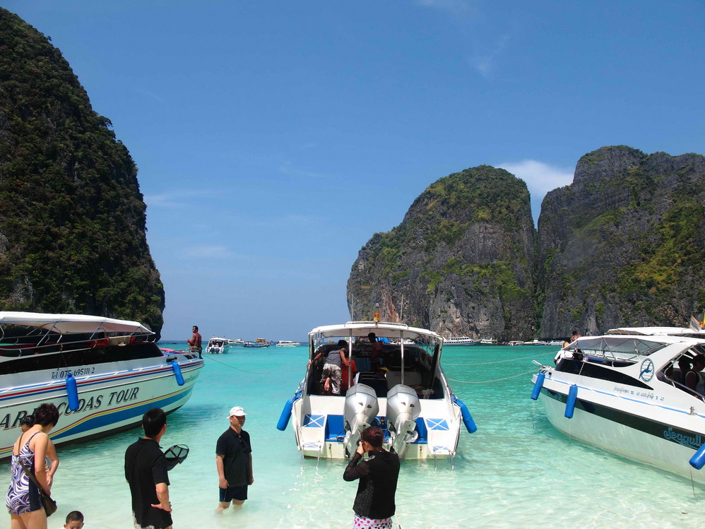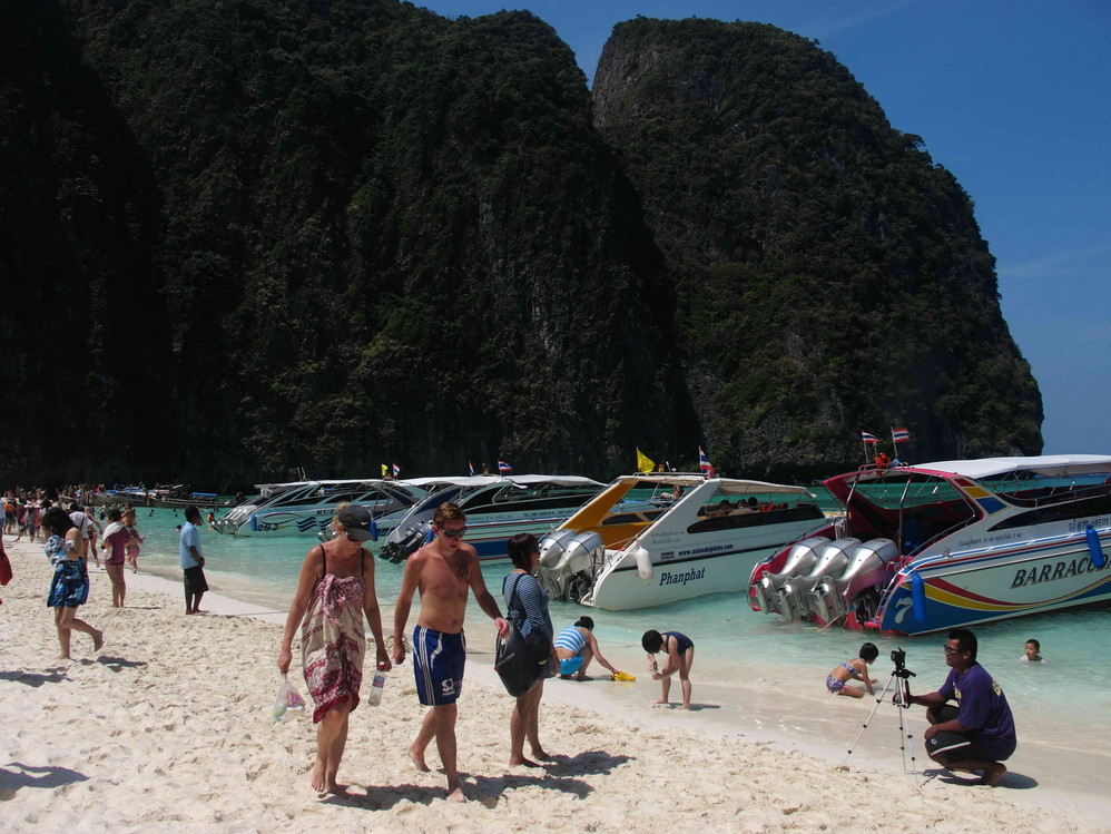 先开到莱昂纳多拍电影《情人沙滩》出名的沙滩,那个沙子白的耀眼,细的出奇。然后开到深水处停船,让我们穿上救生衣下海,在安达曼海中游泳,带上潜水镜潜水。那个海水真清,连我这个旱鸭子都下水了,漂浮在海面上,暖洋洋的,懒懒的,那种感觉无与伦比。我女儿早就带上潜水镜在周围游来游去了,害得我老婆一面要管我女儿,一面还要喊我这个旱鸭子早点上船。真希望能在那个地方多住几天呀。