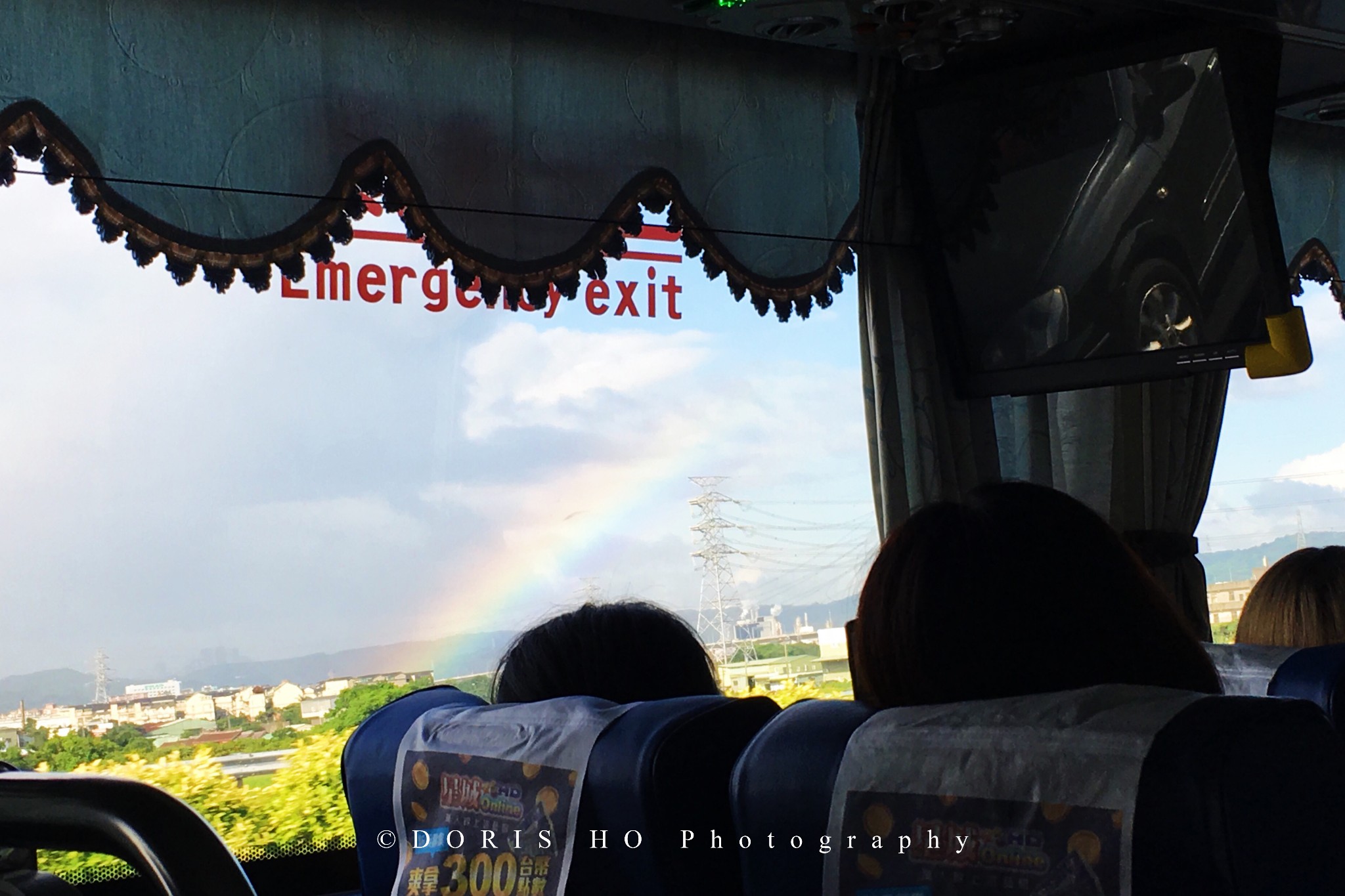 果然台风来之前的天气都特别好,大巴走在公路上意外地看到了彩虹;)
