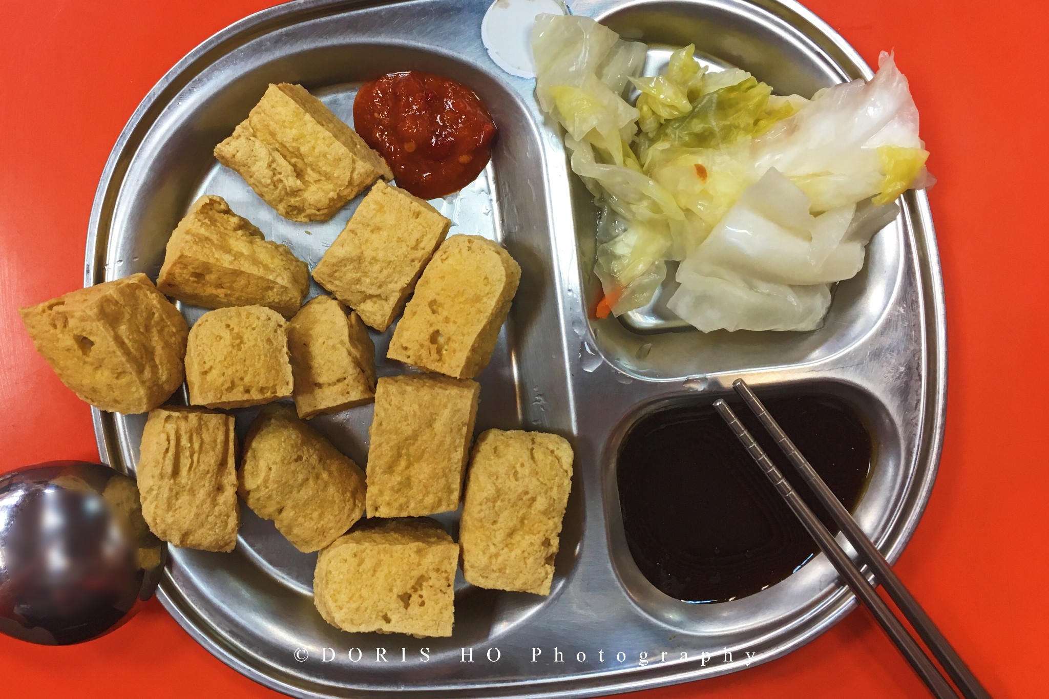 日思夜想的里长伯臭豆腐王摊位前已经挤满了人,幸好在旁边有人比较少的店面,外脆内嫩、咬下去有湯汁的臭豆腐热腾腾的,没有特别的臭或者刺鼻,配上酱汁刚刚好(记得要加辣椒酱)。