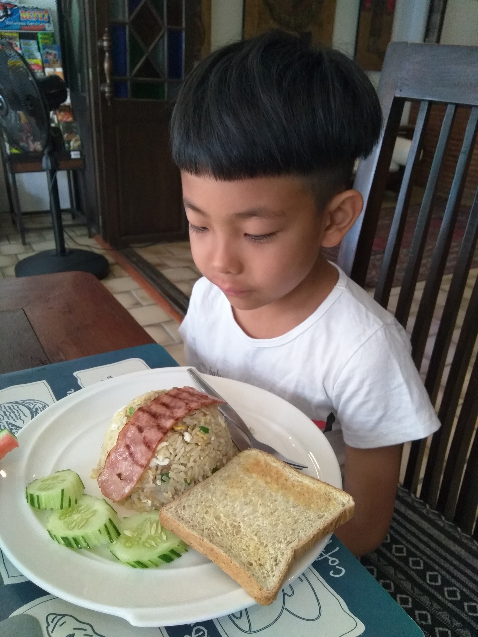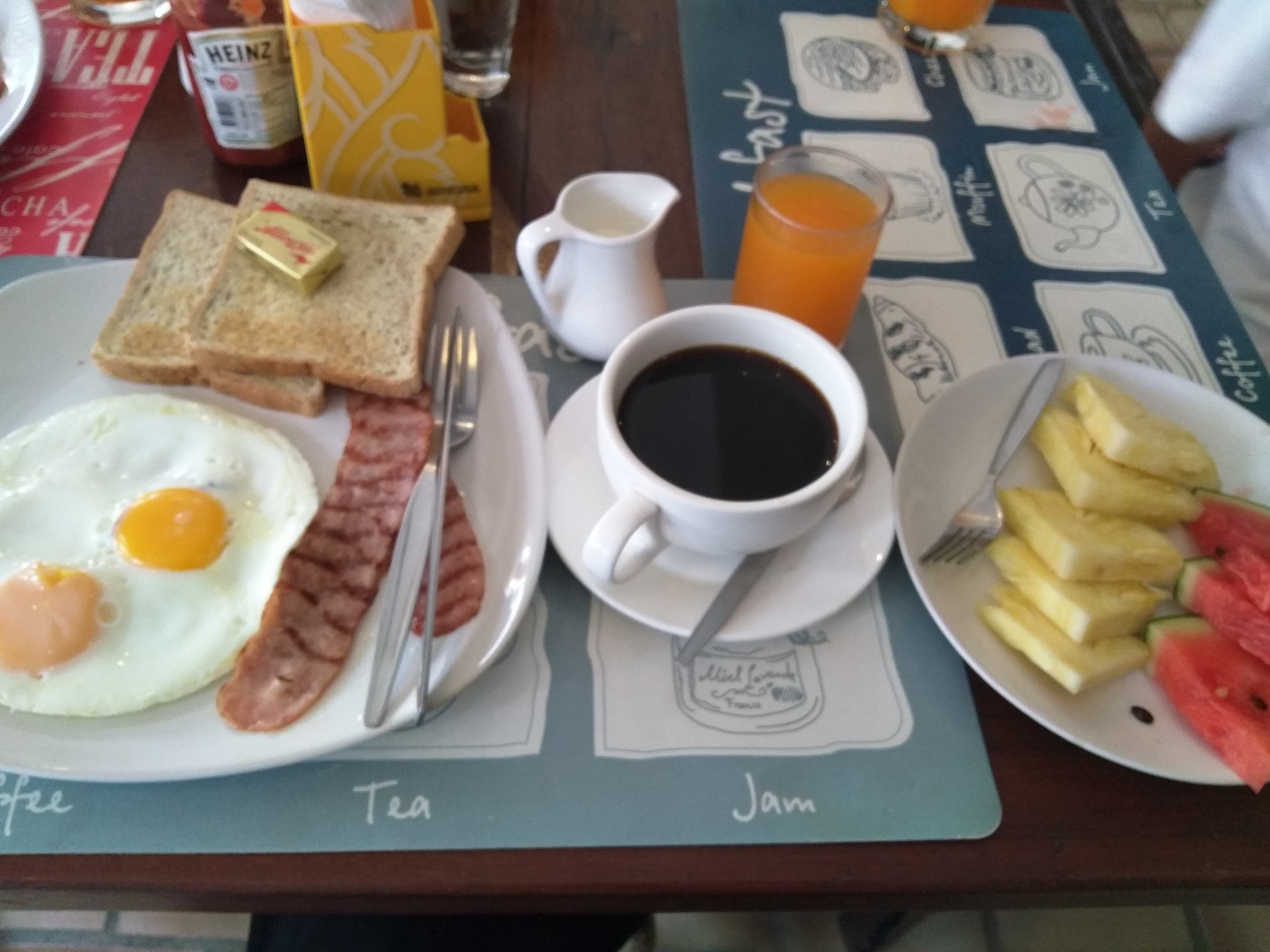 酒店的早餐。有几样可选,但是选来选去,无非是吐司和炒饭。但是每天都吃到撑。
