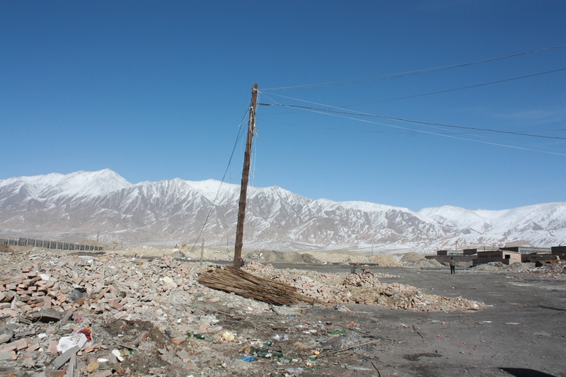 醒来发现不晃了,睁眼一看吓一跳,车外已是戈壁,一条马路笔直深入,暴晒下感觉路在飘动,顿时感觉好渴。打开google map 看了下发现已经在柴达木盆地了,再次跟luna炫耀了一下地理知识。午后两三点的样子到达大柴旦,在一个盐湖边上,应该是一个化工基地,看上去很破败,很脏。。。