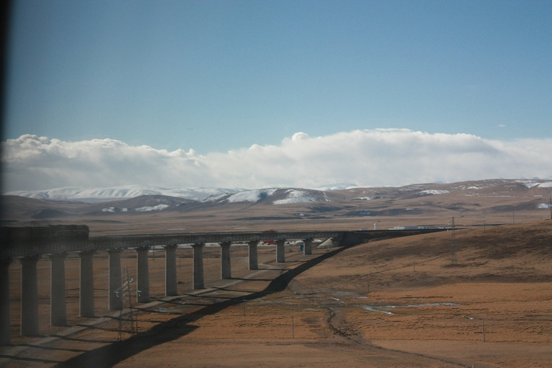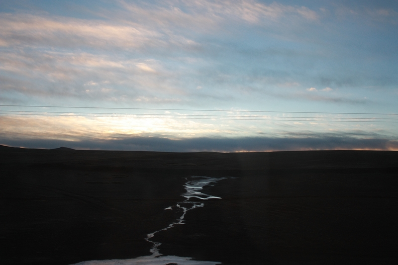 凌晨的火车,一上去就睡,睡梦中过了可可西里……想看可可西里的同学还是别坐这趟车了。早上七点醒来已经到了唐古拉山,天才蒙蒙亮,海拔5000+。基本没什么反应,火车上还是很舒服。