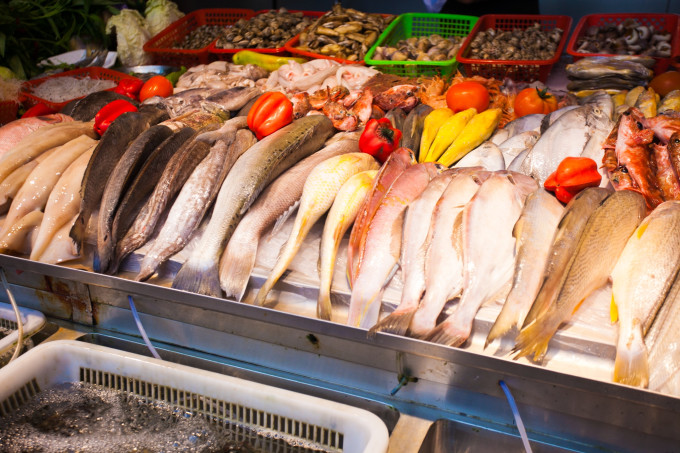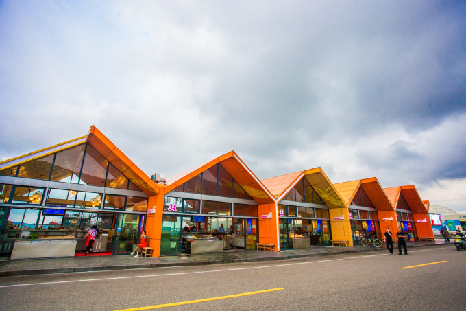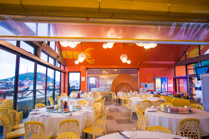 沈家门的海鲜排挡由这一排黄橙三角屋组成,也是这里一道独有的风景线。