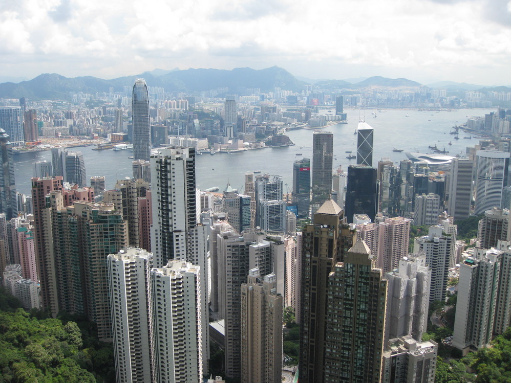 坐天星游轮在中环轮渡站下,在出口有直接的巴士15C到太平山 顶,不过这一班车要早上10点才出发,所以我们只好问路走到前面的一个巴士总站坐15路巴士直接上山顶。15路巴士完全让你感受到了香港 如何高效率的用地,弯弯曲曲的山路上也有不少的楼房,这就是香港 !