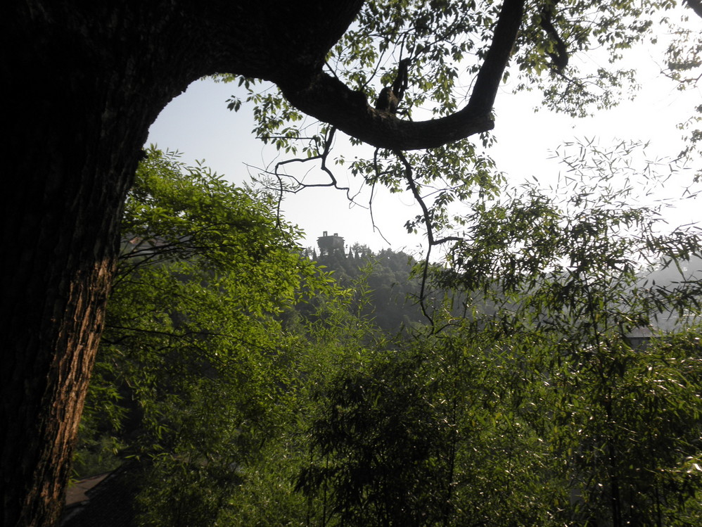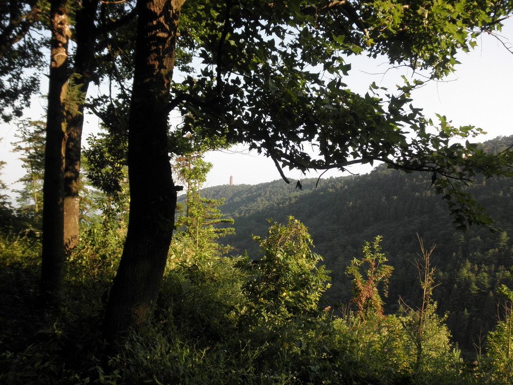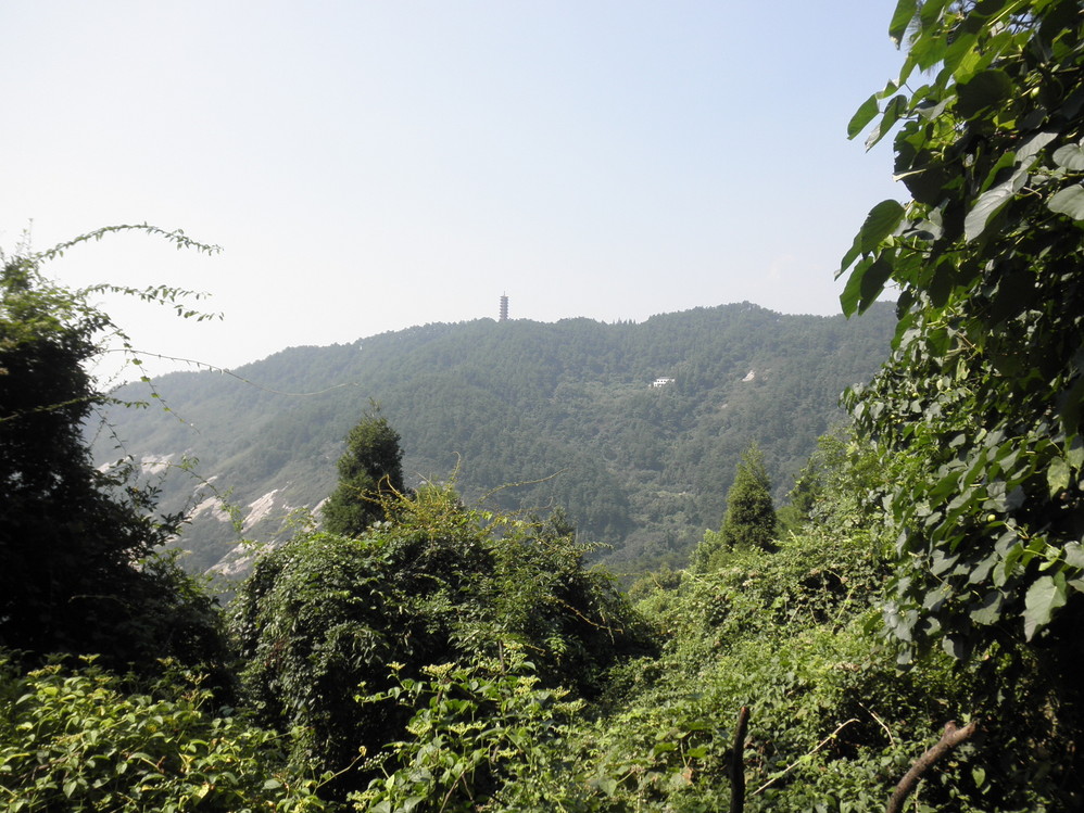 太阳开始西斜,远眺瑞应峰上舍利塔。