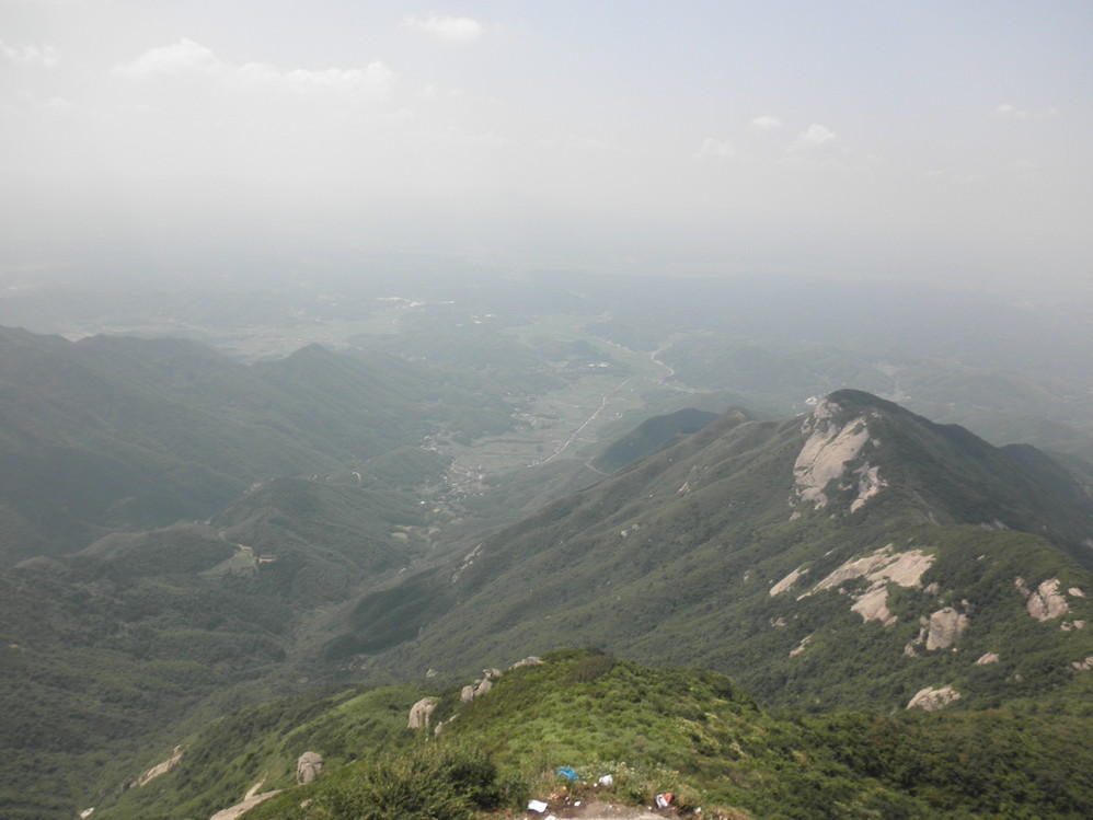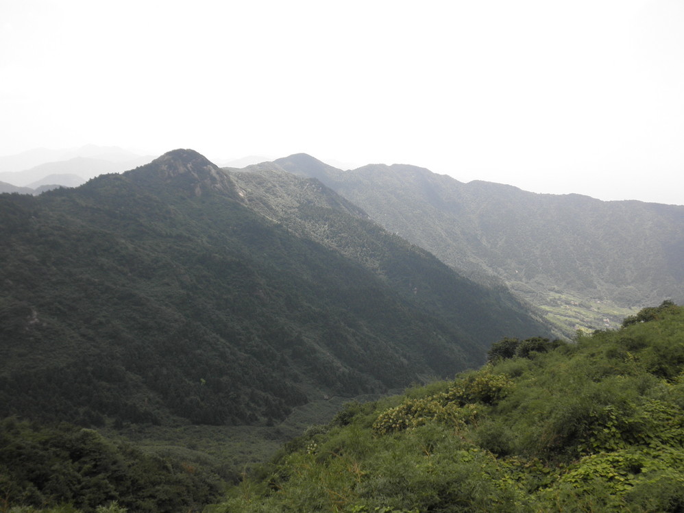 祝融殿后的风景,远处依稀可见一个干涸了四分之三的水库。。。旱情严重啊。