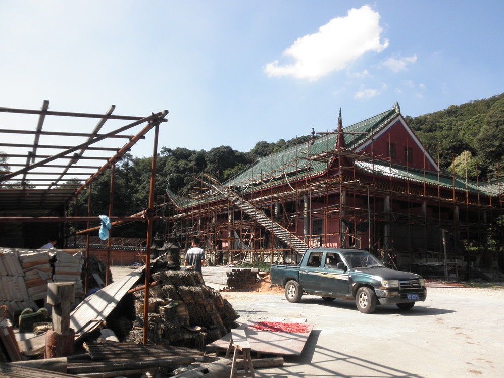 上封寺,正在维修。看攻略中提到看日出的人多选择在这里住宿。这时已经是下午三点,我们匆忙下山,到祖师殿后再往下一个景点。从祖师殿到祝融殿只有一条路,不管是上山下山都挤在一块。