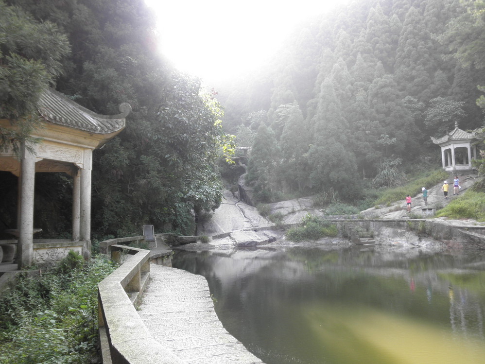 灵芝泉,据说是蒋介石给他夫人和女儿修的私人游泳池。终于到了有小商贩和游客的景点了,下山一路是又饿又渴。