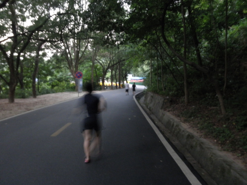 远处看见山门了~激动地再次加快步伐。身边三三两两的人慢跑锻炼身体在。