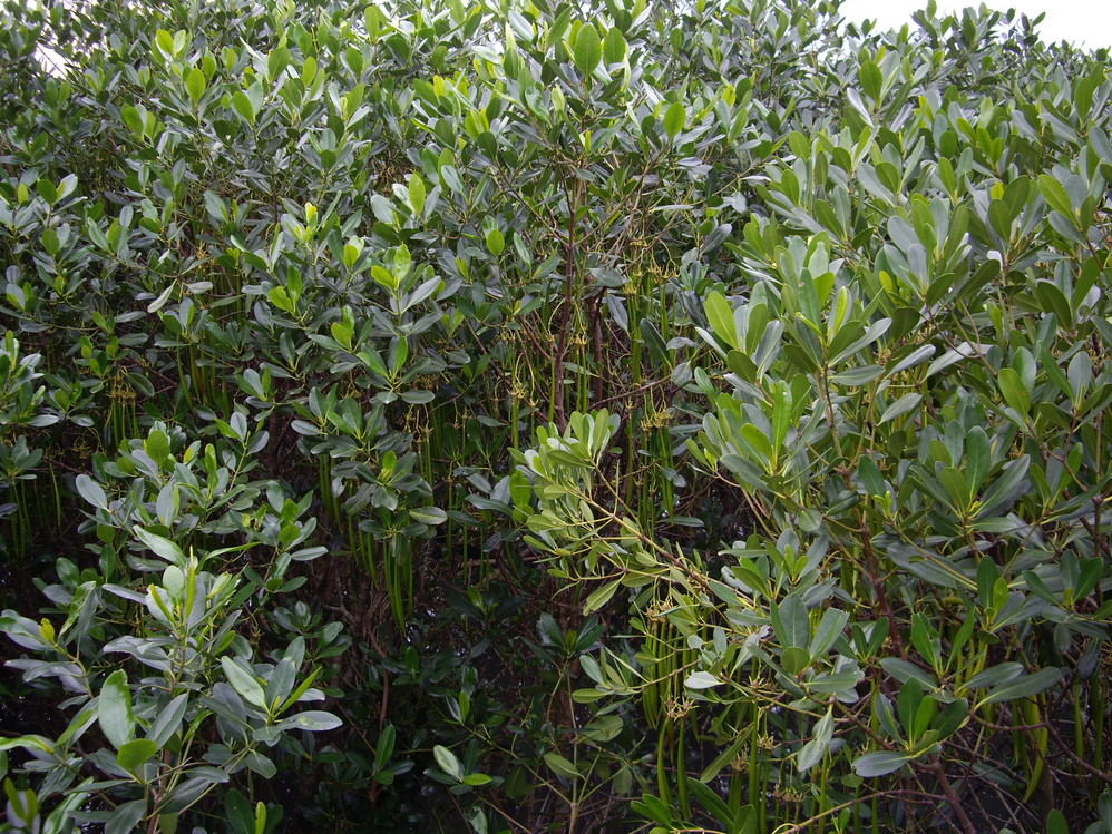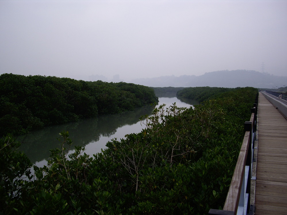 提防旁為占地廣濶的紅樹林, 淡水 河的紅樹林為地球上分佈最北邊的品種.
