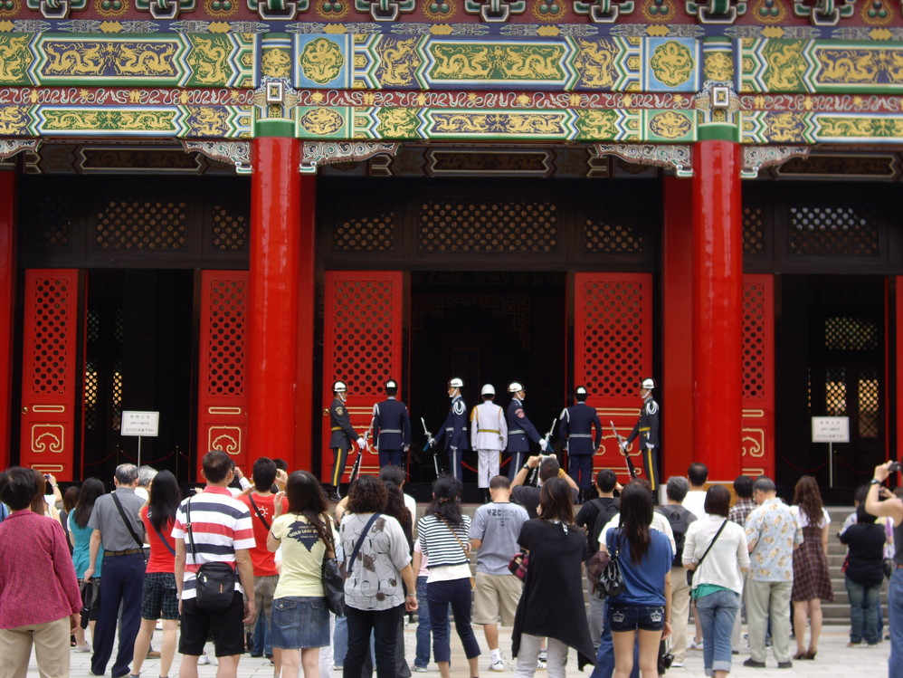 故宮內部不能拍照, 只好拍些外面的建築與大家分享.一般到此至少會看三件寶, 毛公鼎, 內刻銘文字數最多的鼎, 另就是翠玉白菜及肉形石, 大家常開玩笑的說, 有肉, 有菜又有鼎, 剛好可以拿來炒一盤菜.