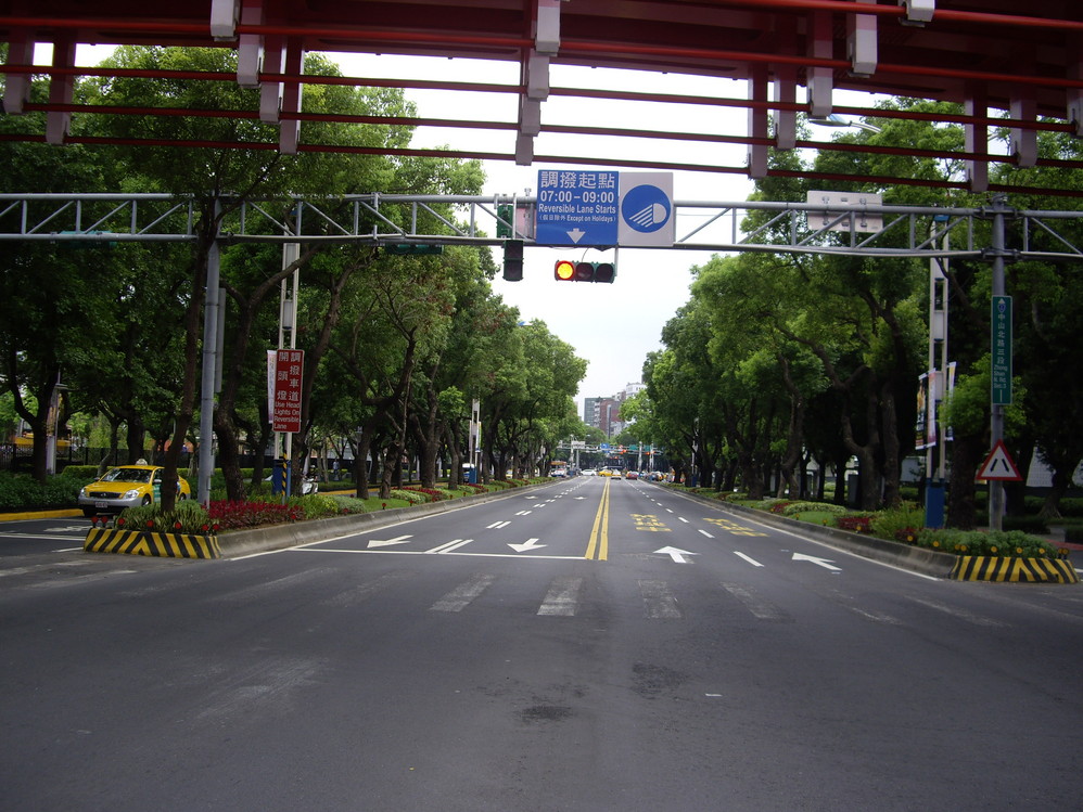 這是中山 北路上往市區方向(總統府)望去的景象. 我經過時剛好都沒車, 就大剌剌的站在馬路中間拍照了.