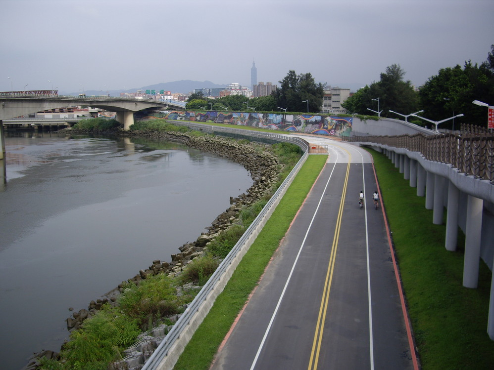 過了台北 故事館後, 上了中山 橋, 橋下就是基隆 河, 目前台灣到處都在建"單車專用道", 在基隆 河、淡水 河及其支流的大小流, 多已建好單車專用道, 可以放心的邊騎單車邊欣賞風景, 也是大部份市民平日健身的地方.