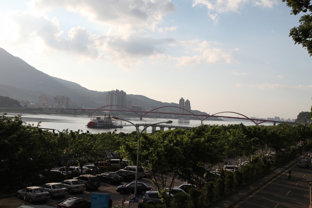站在步道遠眺對面的觀音山和出海口 盡頭的台灣海峽,看著夕陽從水平面上緩緩落下,美景之盛,令人流連忘返。