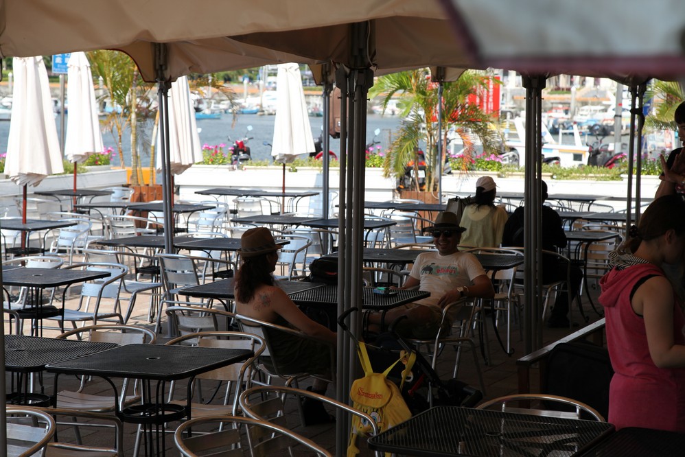 河岸尾端的咖啡廳, 占有絕好的地利, 常是高朋滿座.