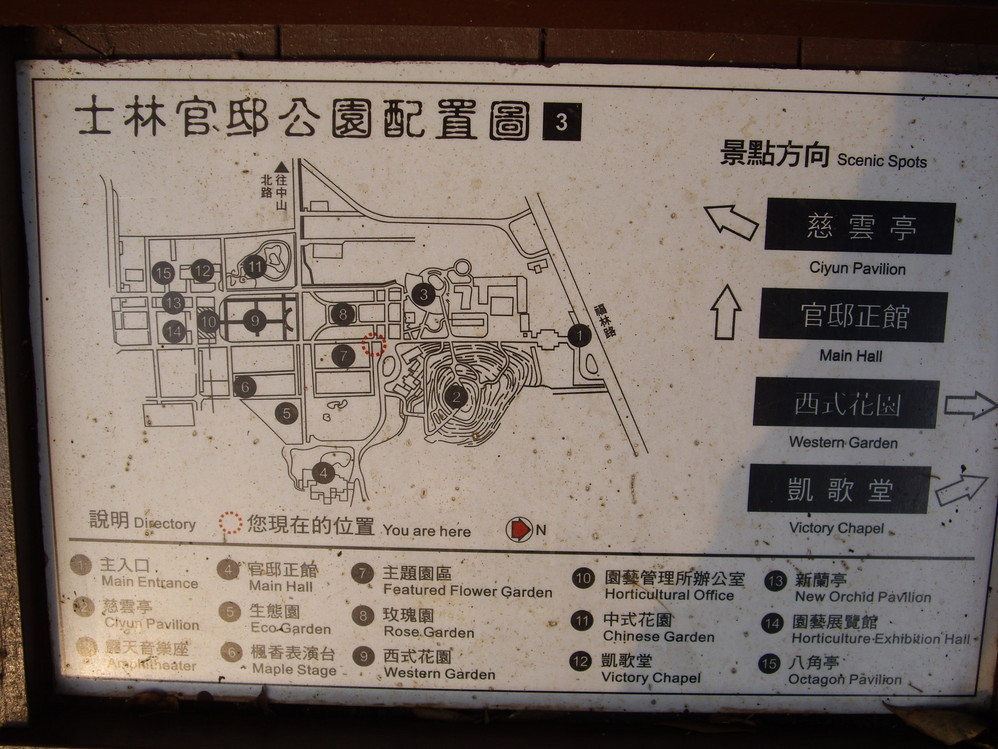 這裏就是士林官邸的正門, 官邸的位置在中山 北路五段與福林路口東南側, 原來是園藝管理所的士林實驗分所, 在國民政府遷台後, 1950年時, 蔣介石的官邸就設於此, 早期, 這裏是不可靠近的禁地, 而在經過長達46年的嚴密護衛後, 終於在1996年正式對外開於, 成為台北 市民假日賞花的好去處.
