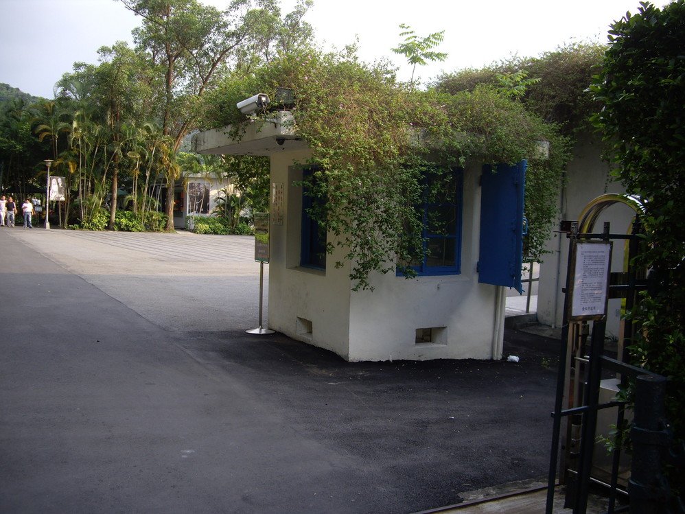 一進大門, 右邊就是警衛亭, 與一般的警衛亭不同的是, 它是雙哨的, 注意看它的下方, 對外各多了一個"射擊口", 在"萬一有事"的情況下, 可有較好的反擊能力. 也是明哨加暗哨的雙重保護.