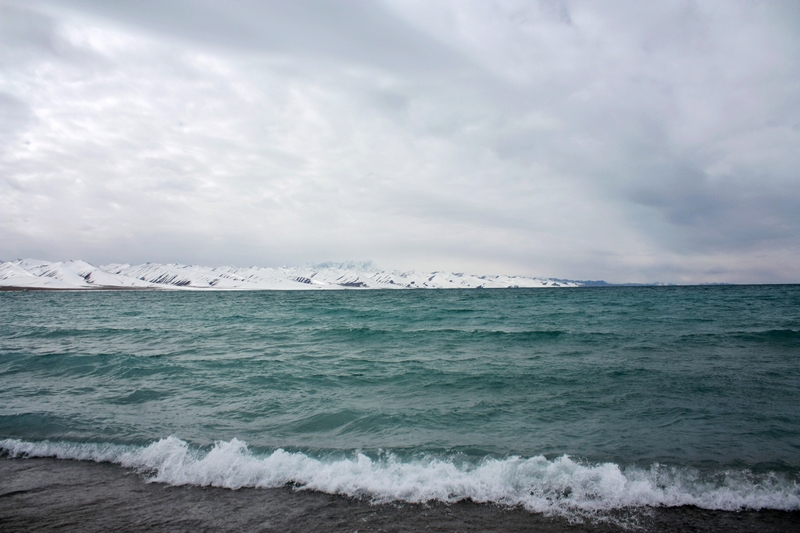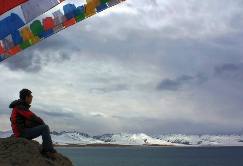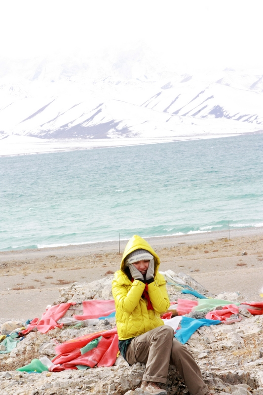 到了当雄,就离开青藏公路,前往纳木错,途中经过那拉根山口,海拔5000+,呼吸有点困难,主要还不是空气稀薄,而是那个风啊实在是大,而且刺骨。在山口,可以鸟瞰纳木错,湖面很宽广,没有蓝天白云,湖面也就没想象中那么蓝。