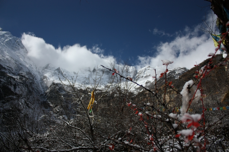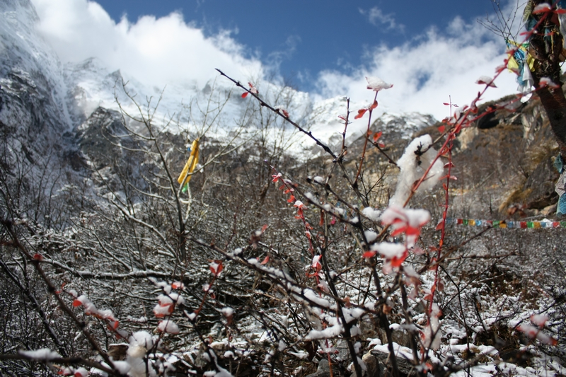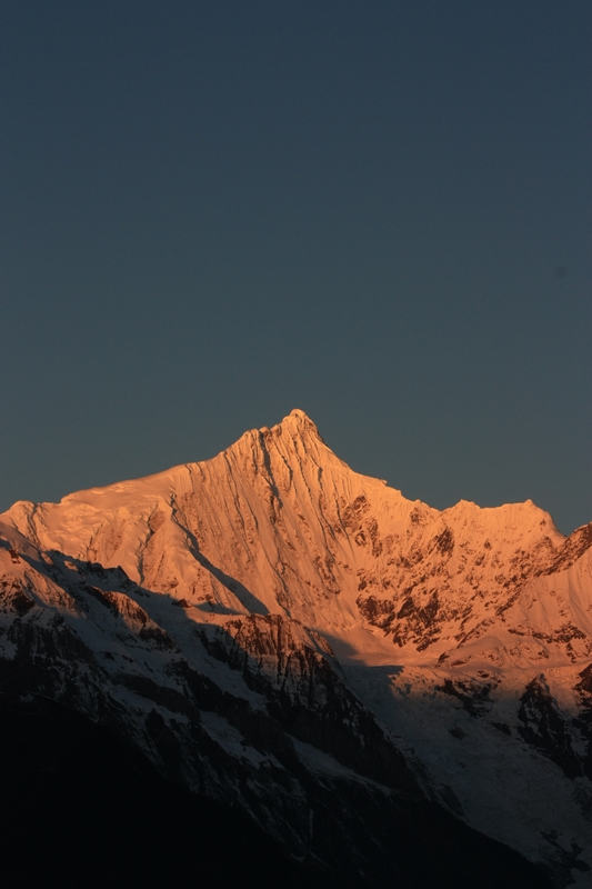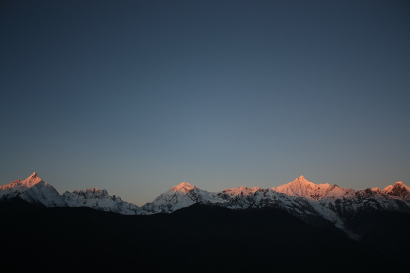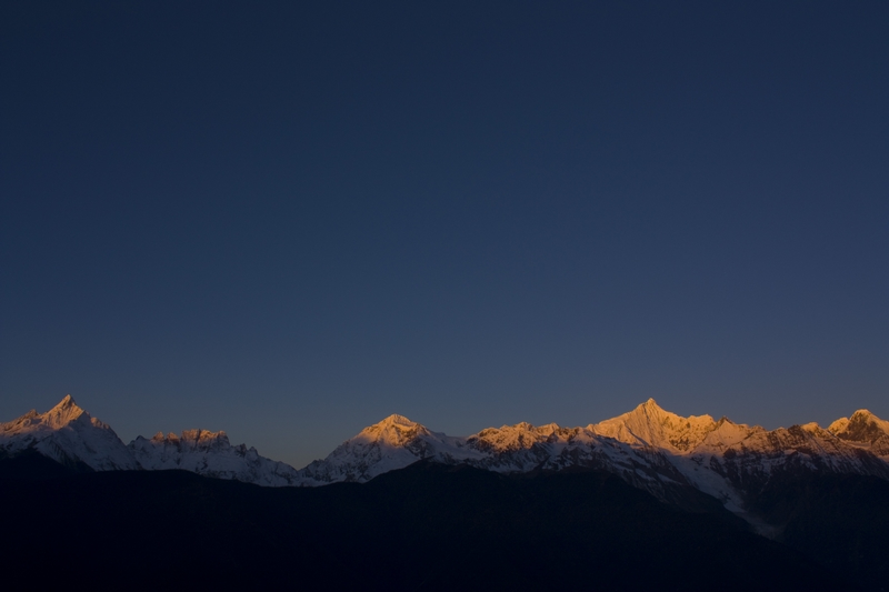 此次雨崩 也是故地重游,记得第一次来这里的时候是雨季,冒着断断续续季风雨完成了西当进出雨崩 以及笑农大本营,冰湖以及神瀑的徒步,几乎没怎么看见雪山,仍然印象深刻,兴奋不已,对于种种遗憾,那时候就曾发誓要再来一次,要看到日照 金山 ,要看到神瀑的彩虹,要看到蓝色的冰湖……