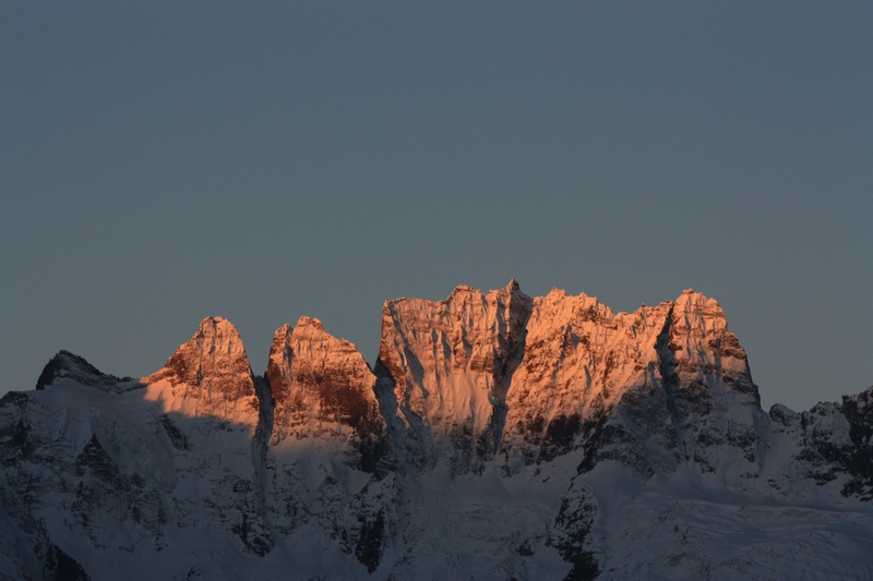 跟青年旅舍那边定好,然后租了两根登山杖,就去休息了。第二天一早,天气很好,日照 金山 来了,太美了,这次终于亲眼看到了!